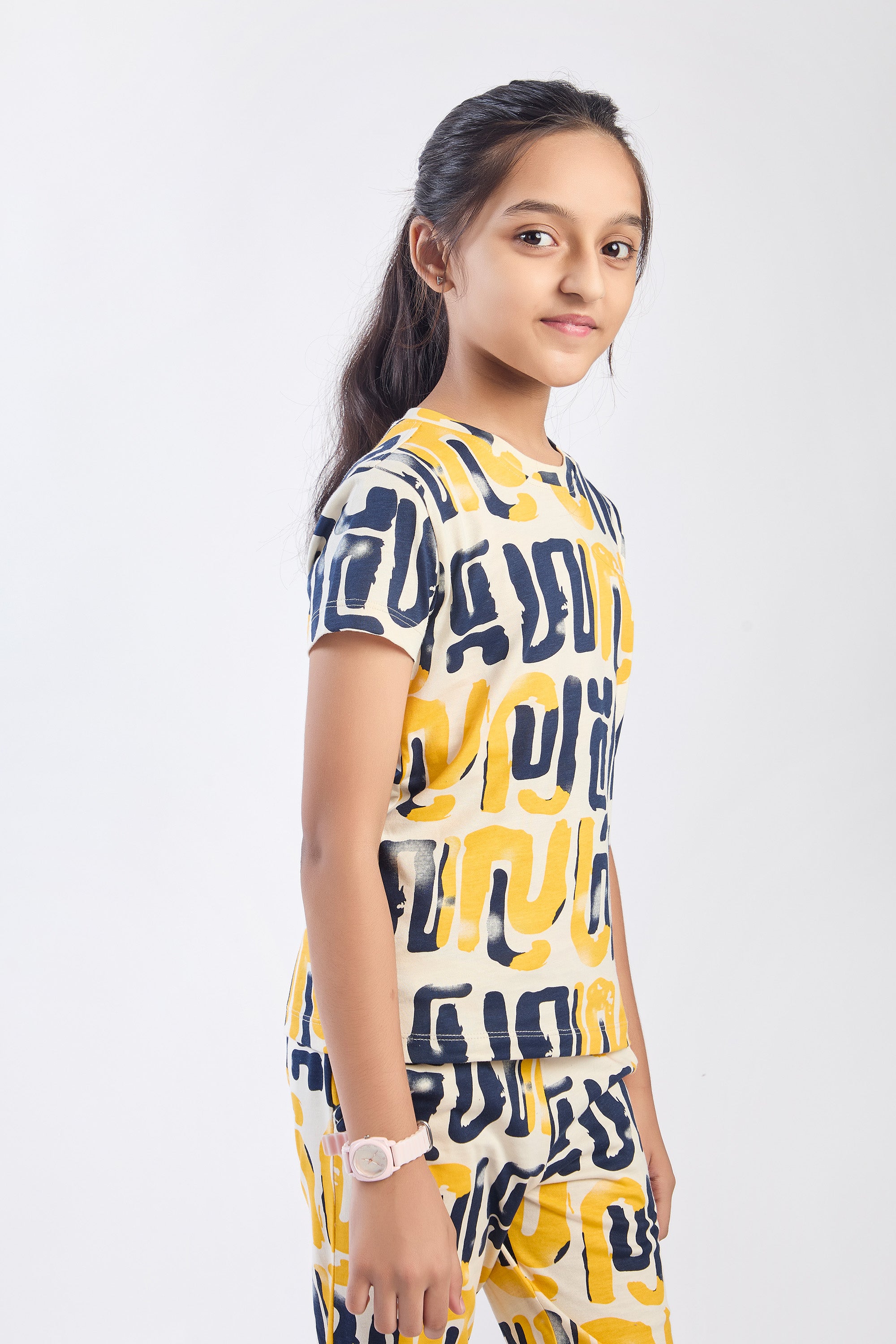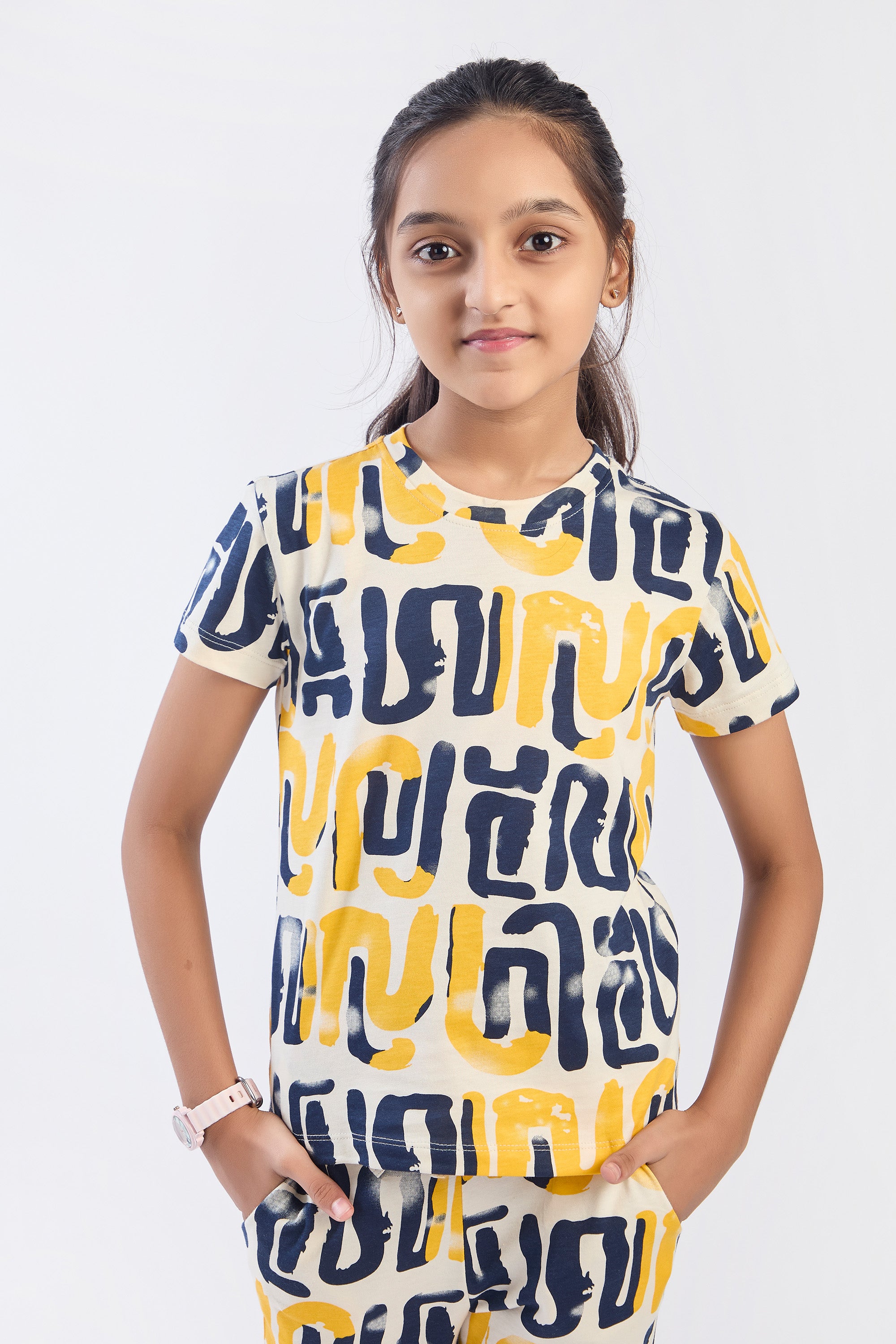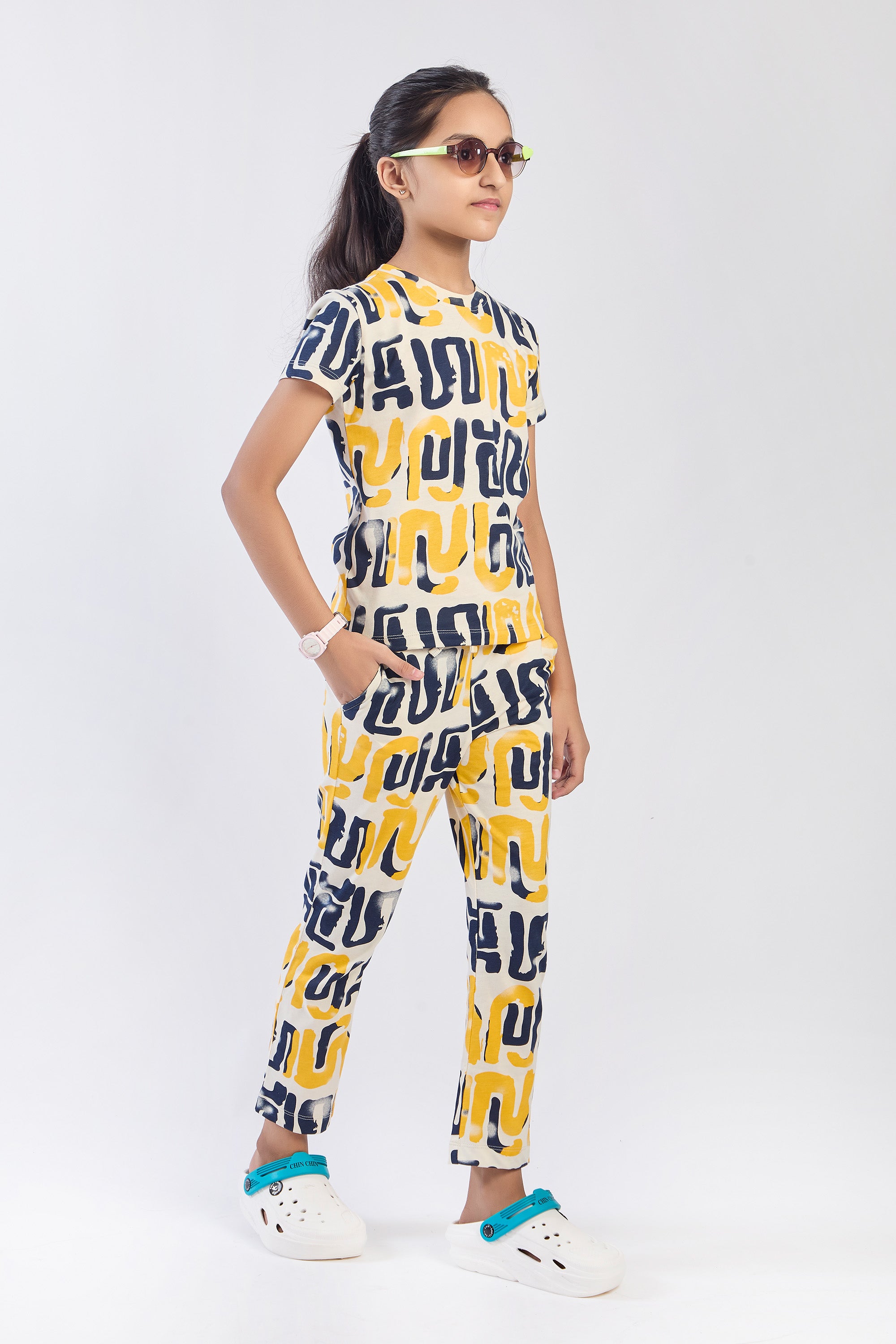 ONE SKY Girls' Cotton Co-ord Set | Abstract Print Tee & Pants | Casual 2-Piece | Ages 3-14 Years