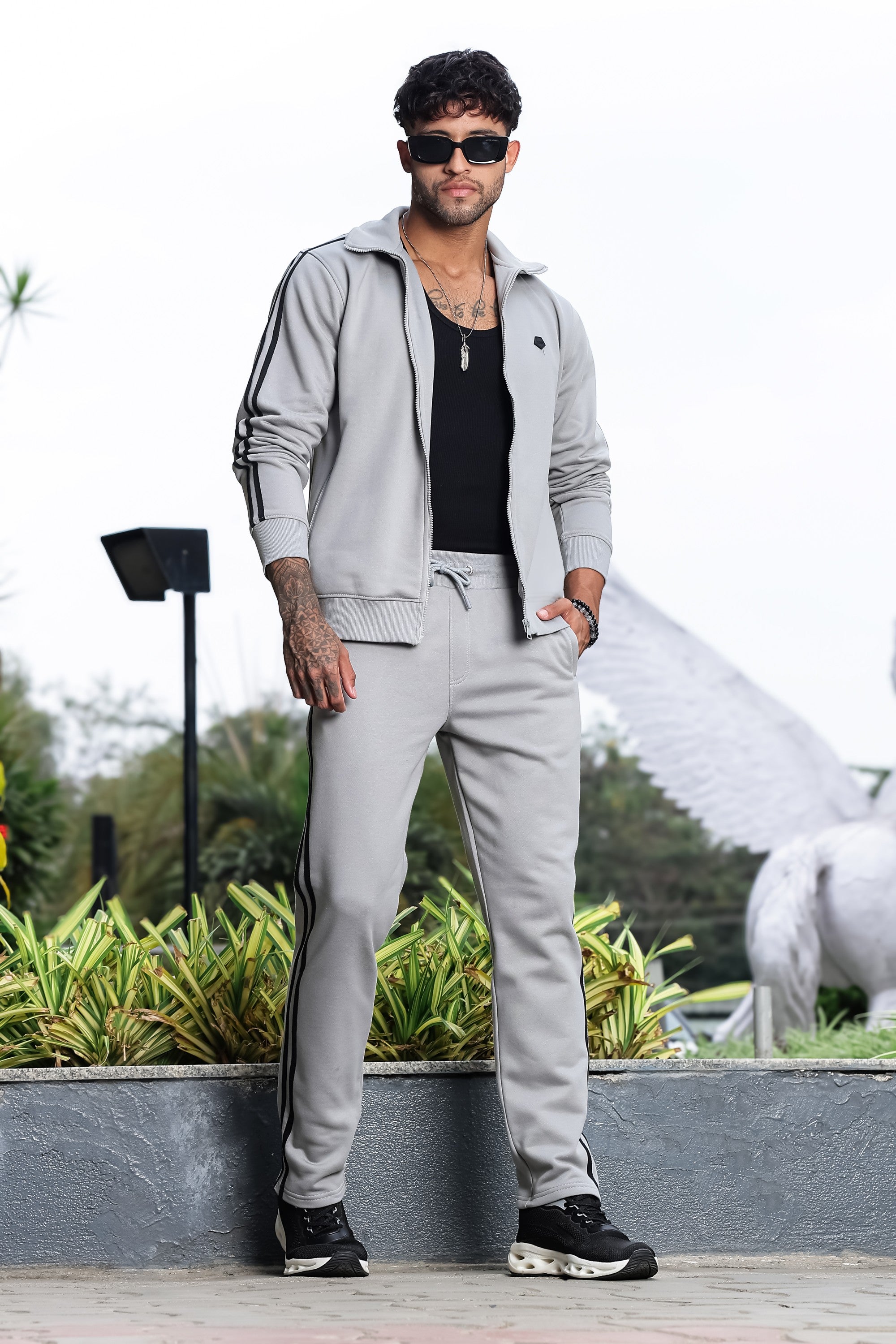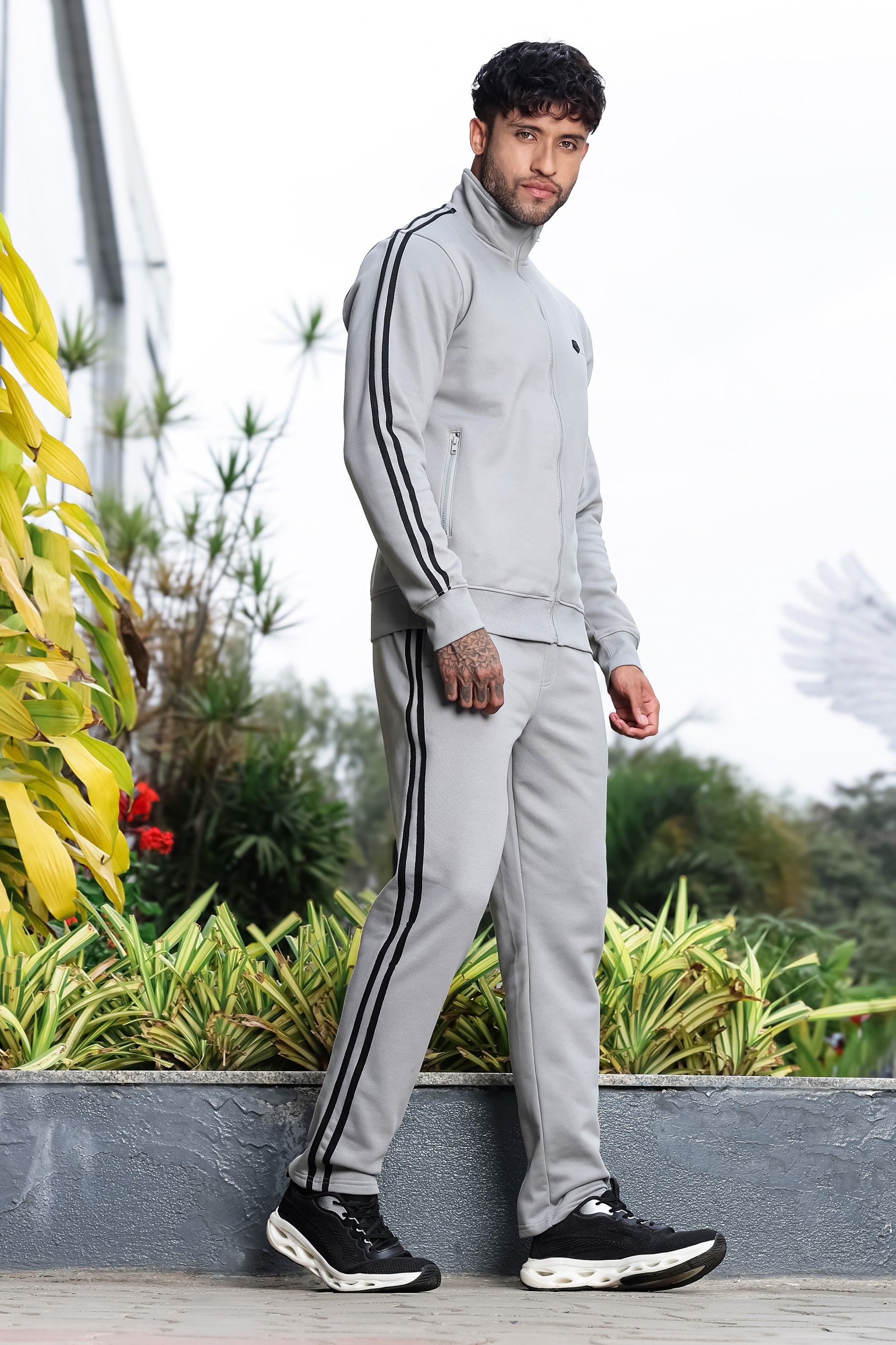 Men's Striped Tracksuit Set | Cotton Blend Activewear with Mock Collar | Zipper Top & Drawstring Bottom | 4 Pockets | Mid-Rise Flat Front Joggers | Casual Gym Sportswear