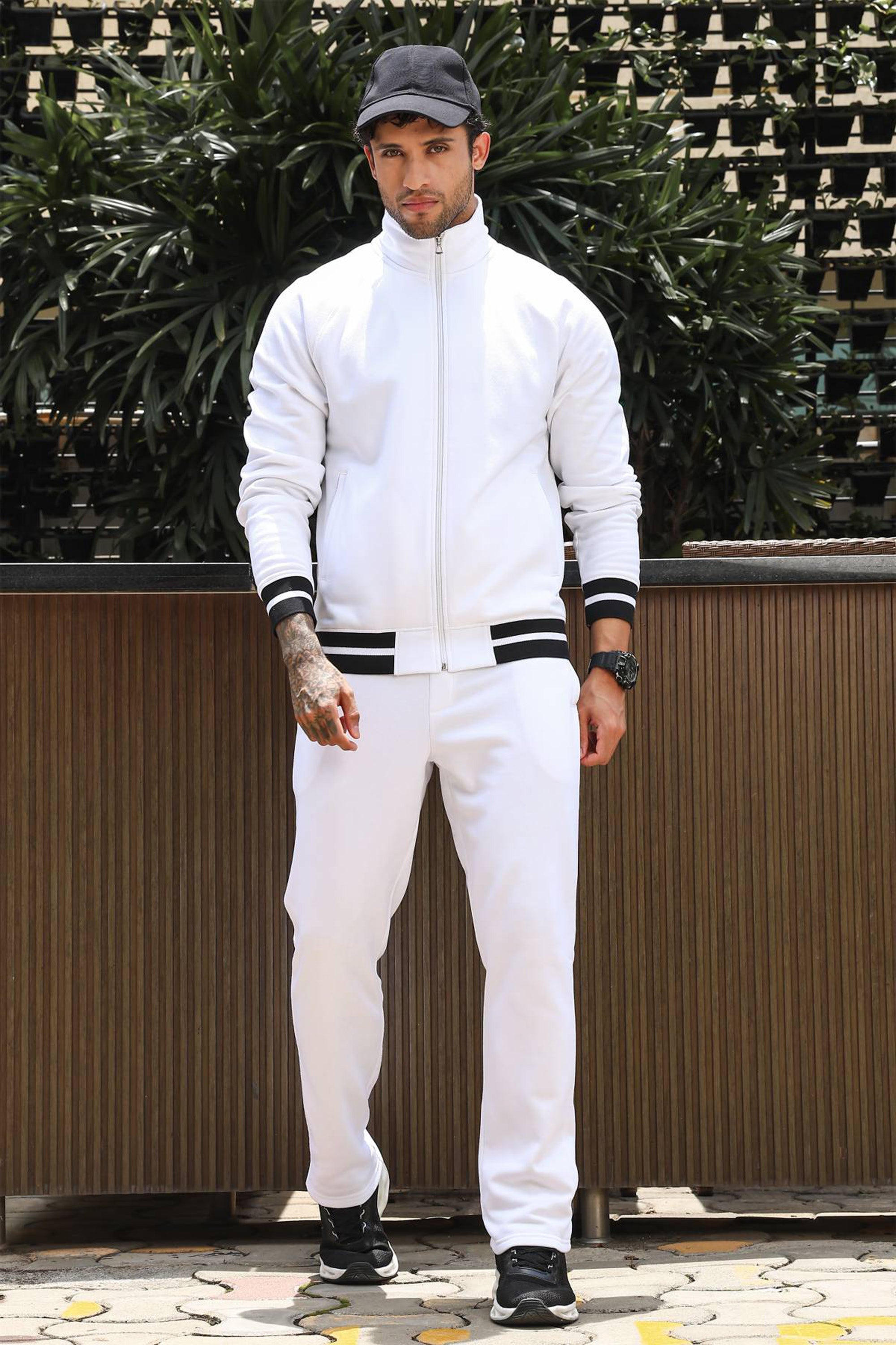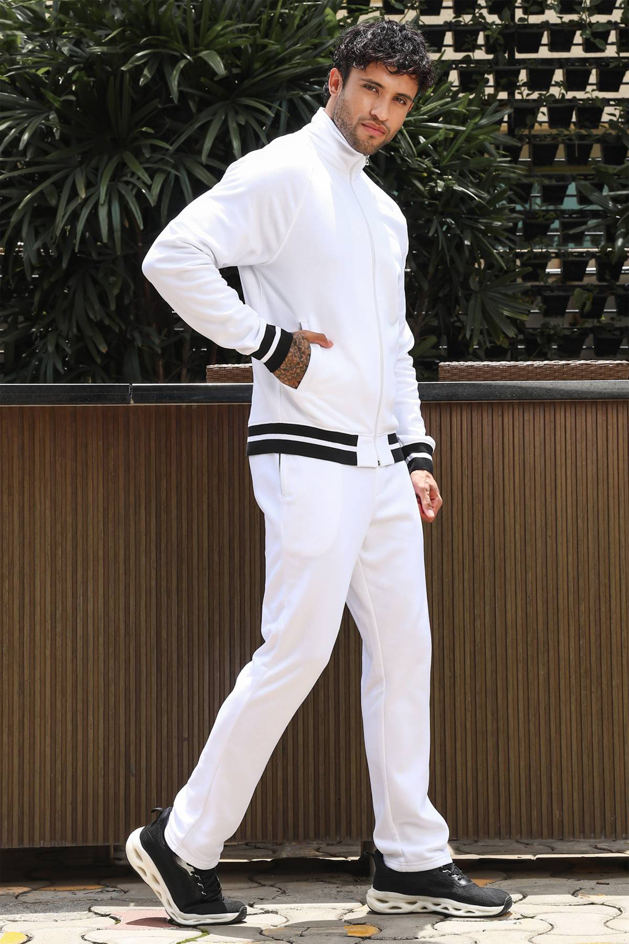 Men's Solid Tracksuit Set | Cotton Blend Mock Collar Zip-Up Jacket & Drawstring Joggers | Mid-Rise Fit | 4 Pockets | Long Sleeves | Casual Athleisure Sportswear