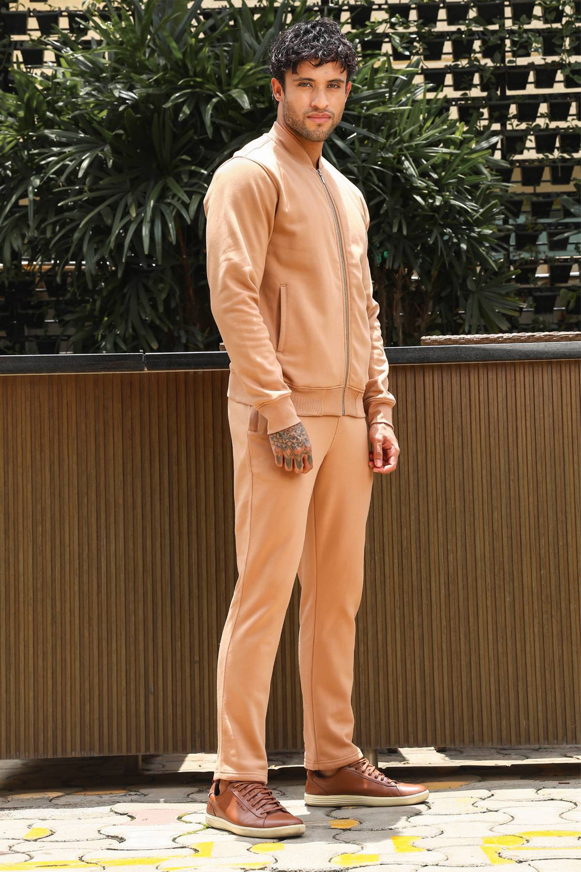 Upgrade your casual wardrobe with this Men’s Solid Tracksuit Set, crafted from a breathable cotton blend for all-day comfort and flexibility. The set includes a zip-up jacket featuring a modern stand collar and matching mid-rise joggers with a flat front and adjustable drawstring waist for the perfect fit.