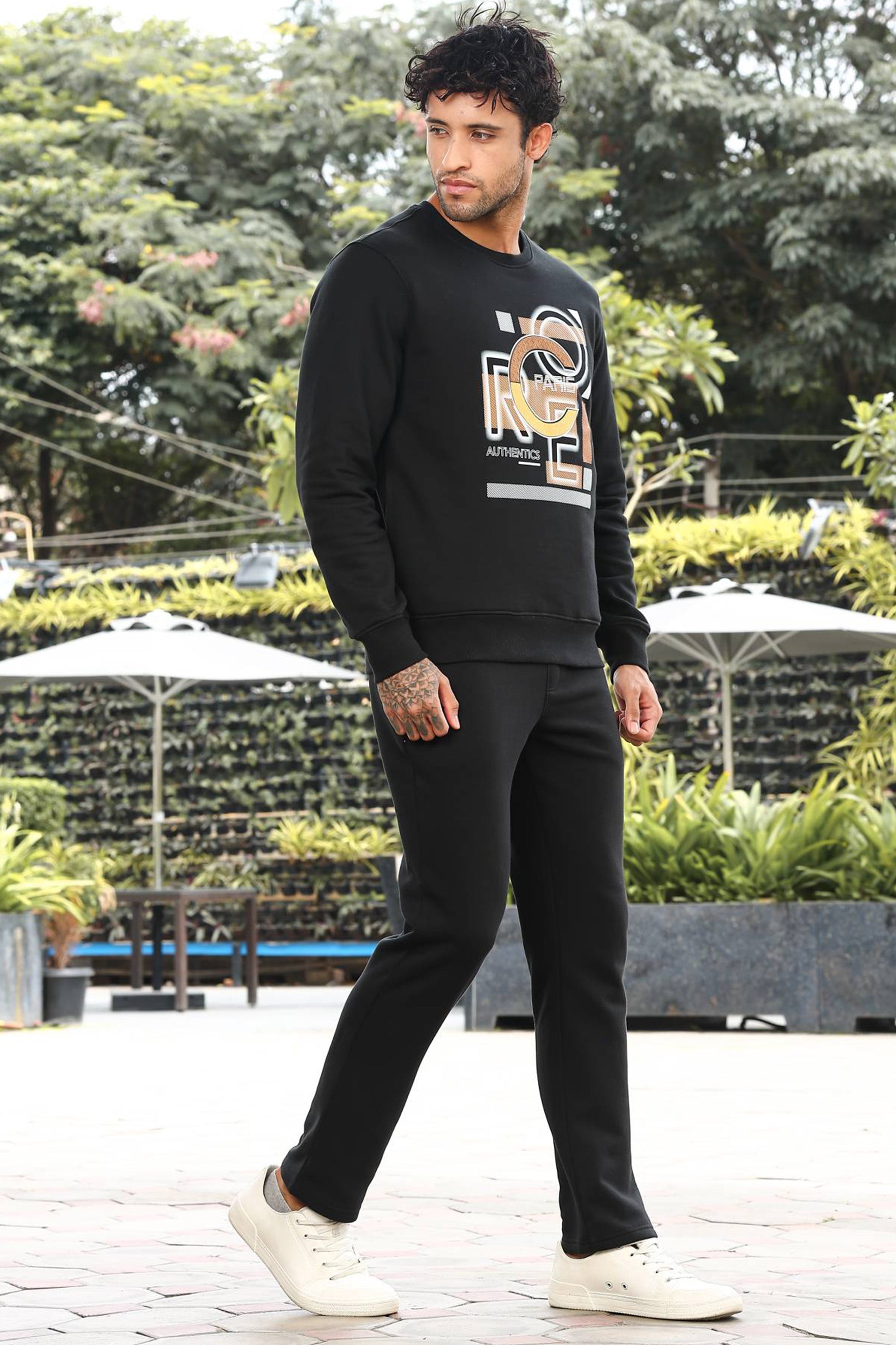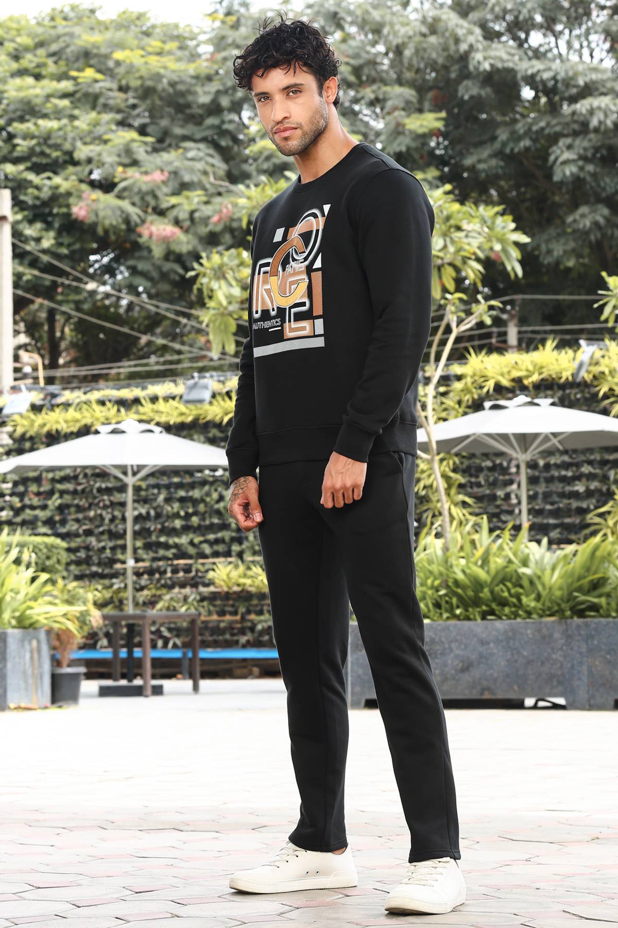 Stand out in casual style with this Men’s Typography Printed Tracksuit Set. Made from a soft, breathable cotton blend, this set features a long-sleeve round neck top paired with mid-rise joggers that have a flat front and adjustable drawstring waist for a perfect fit.