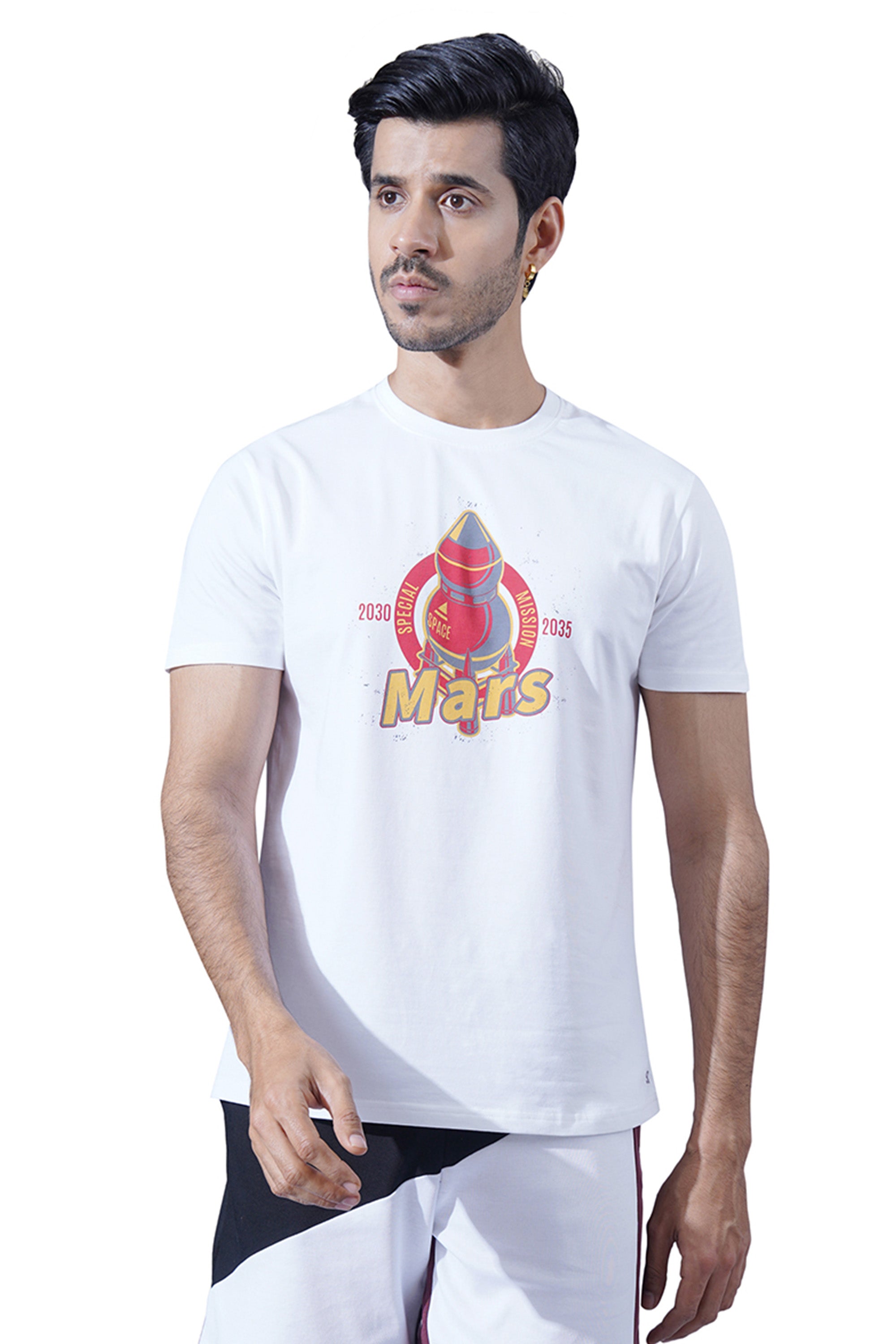 ONE SKY MEN WHITE GRAPHIC PRINTED T SHIRT