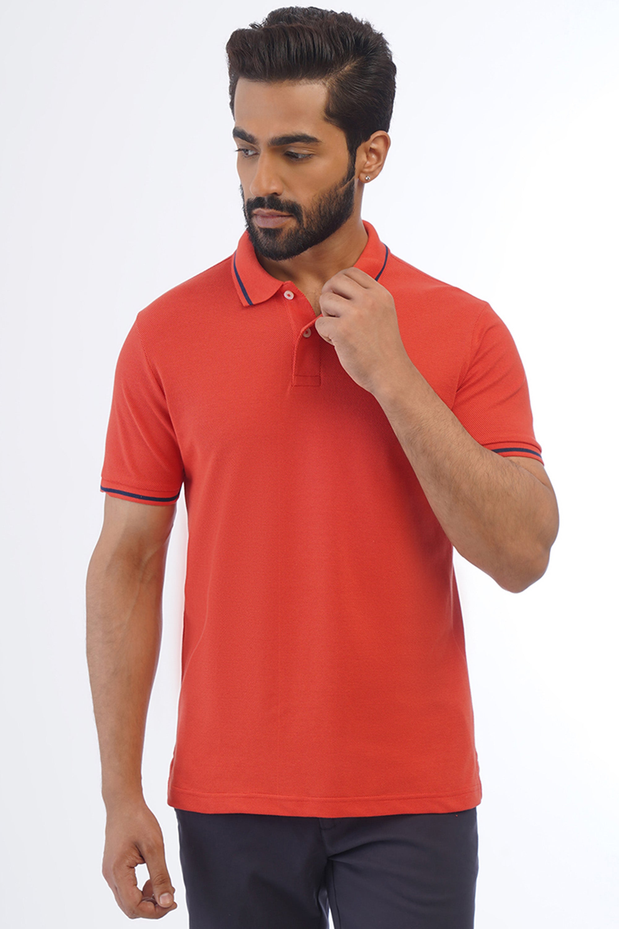 Men's Solid Polo T-Shirt | Cotton-Poly Spandex Blend | Polo Collar Short Sleeves Casual Tee with Button Closure