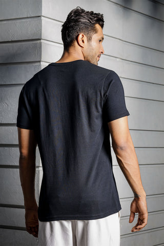 Men’s Premium Cotton Black T-Shirt with Embroidered Slogan
