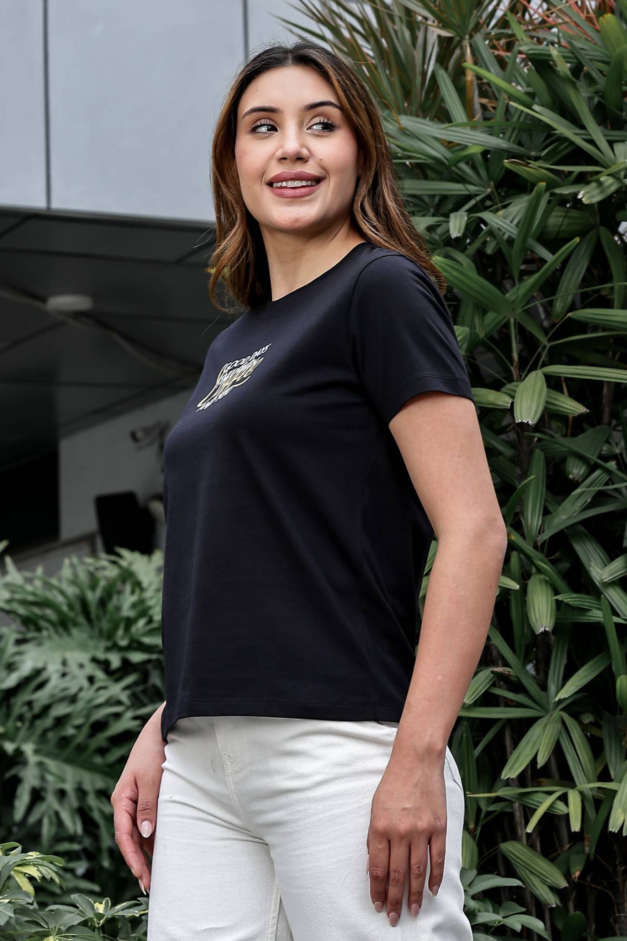 WOMEN ROUND NECK BLACK T SHIRT