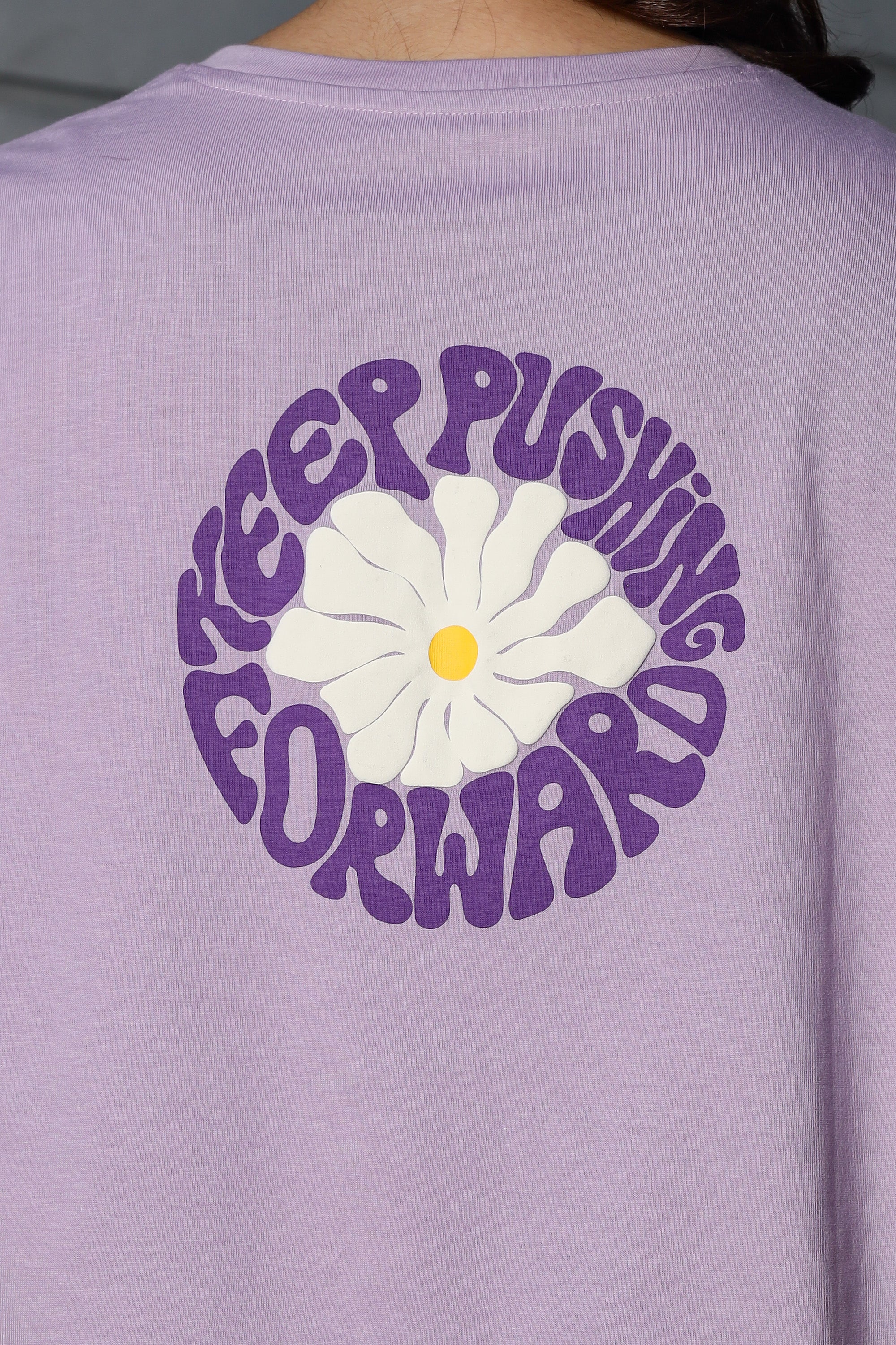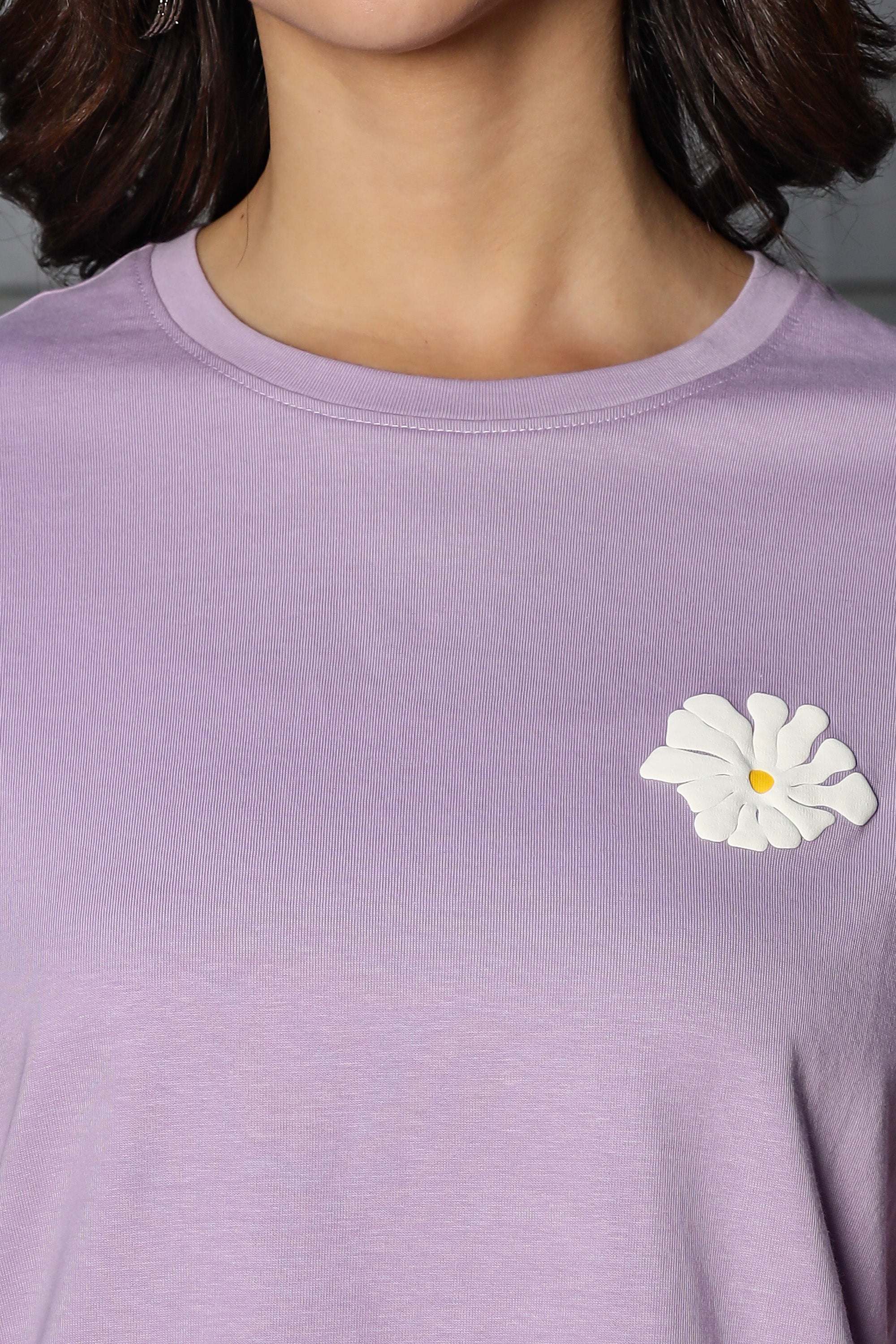 WOMEN LAVENDER FOREST DROP SHOULDER SLEEVES PRINTED T SHIRT