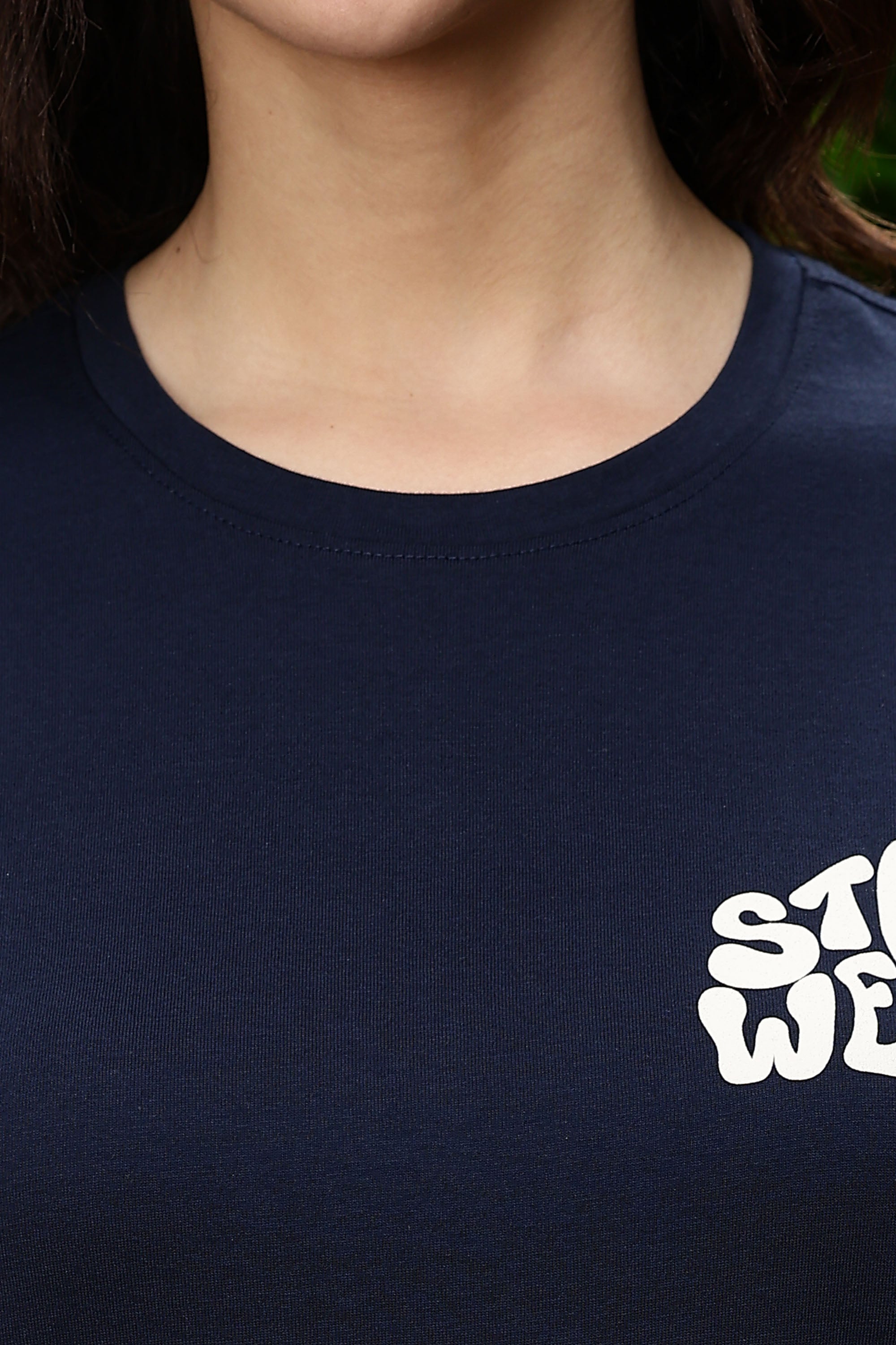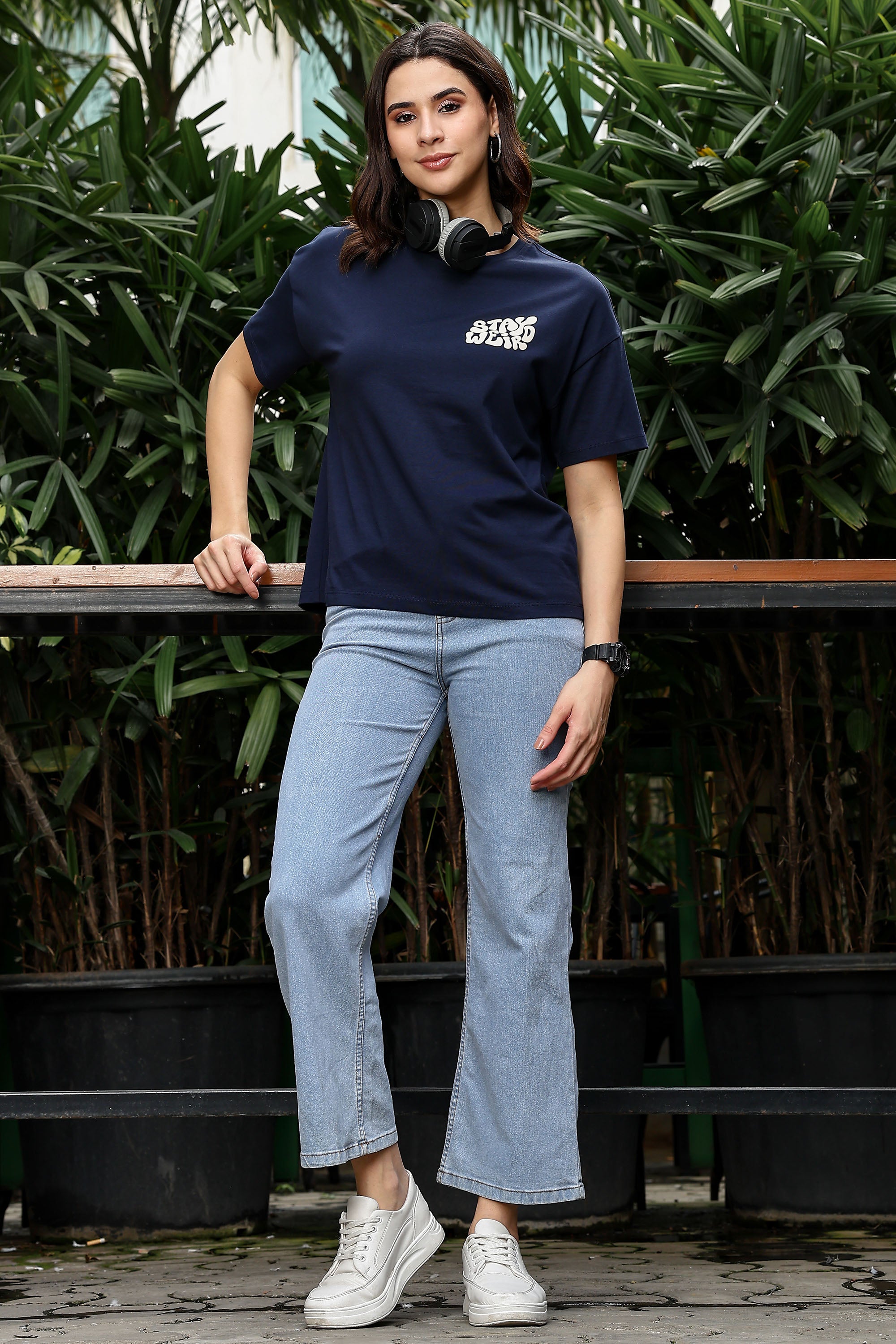 WOMEN NAVY DROP SHOULDER SLEEVES T SHIRT