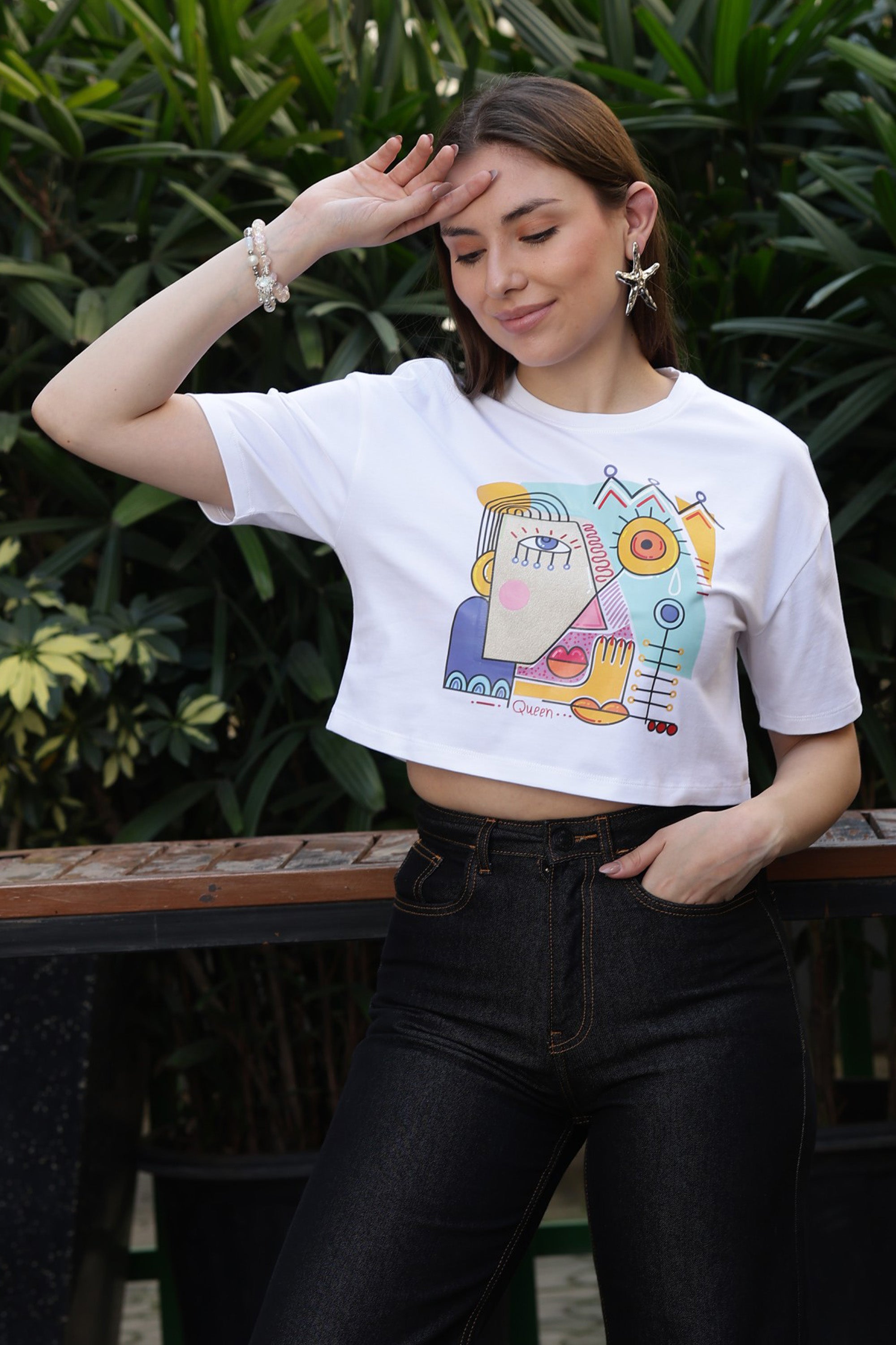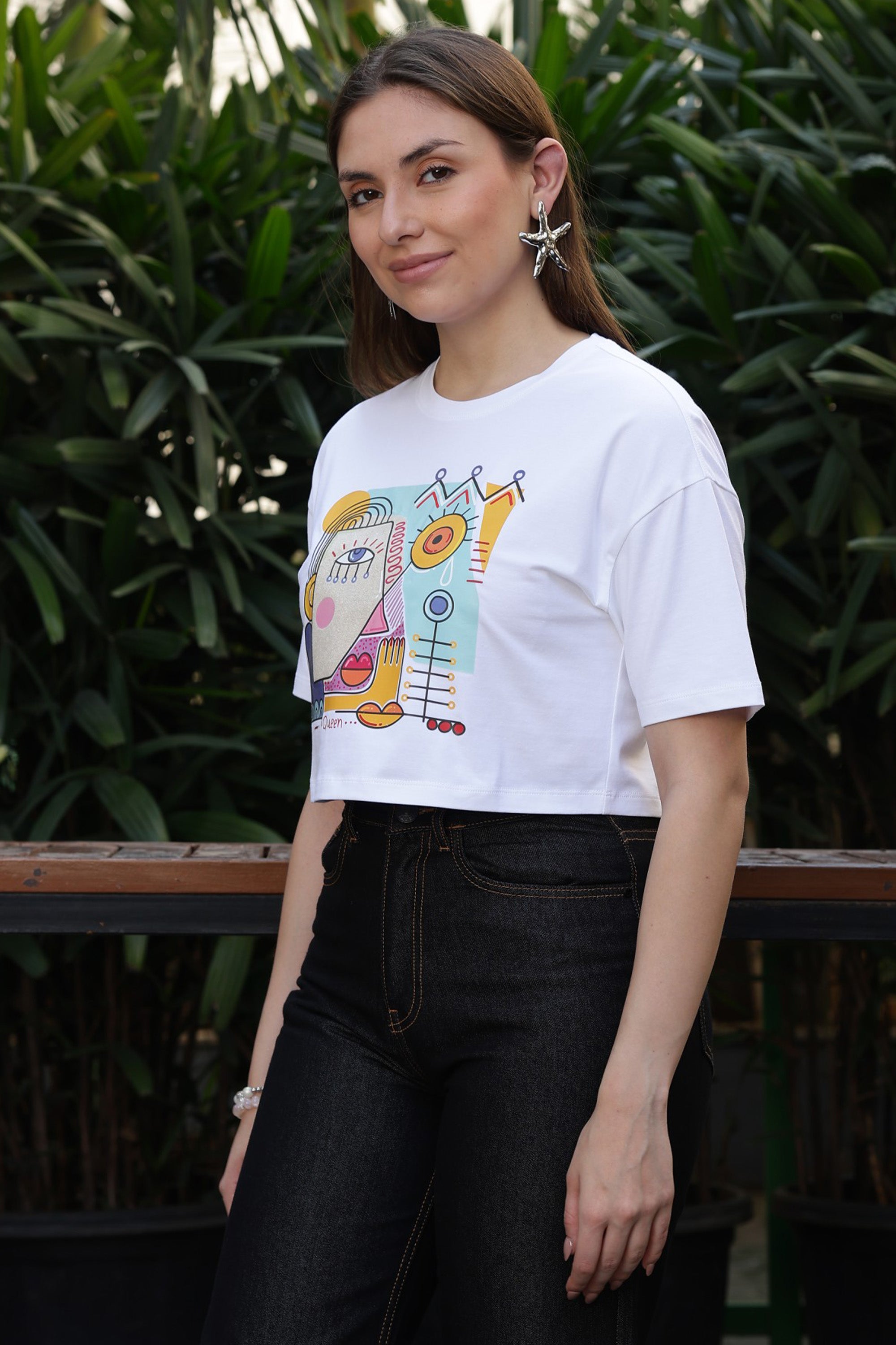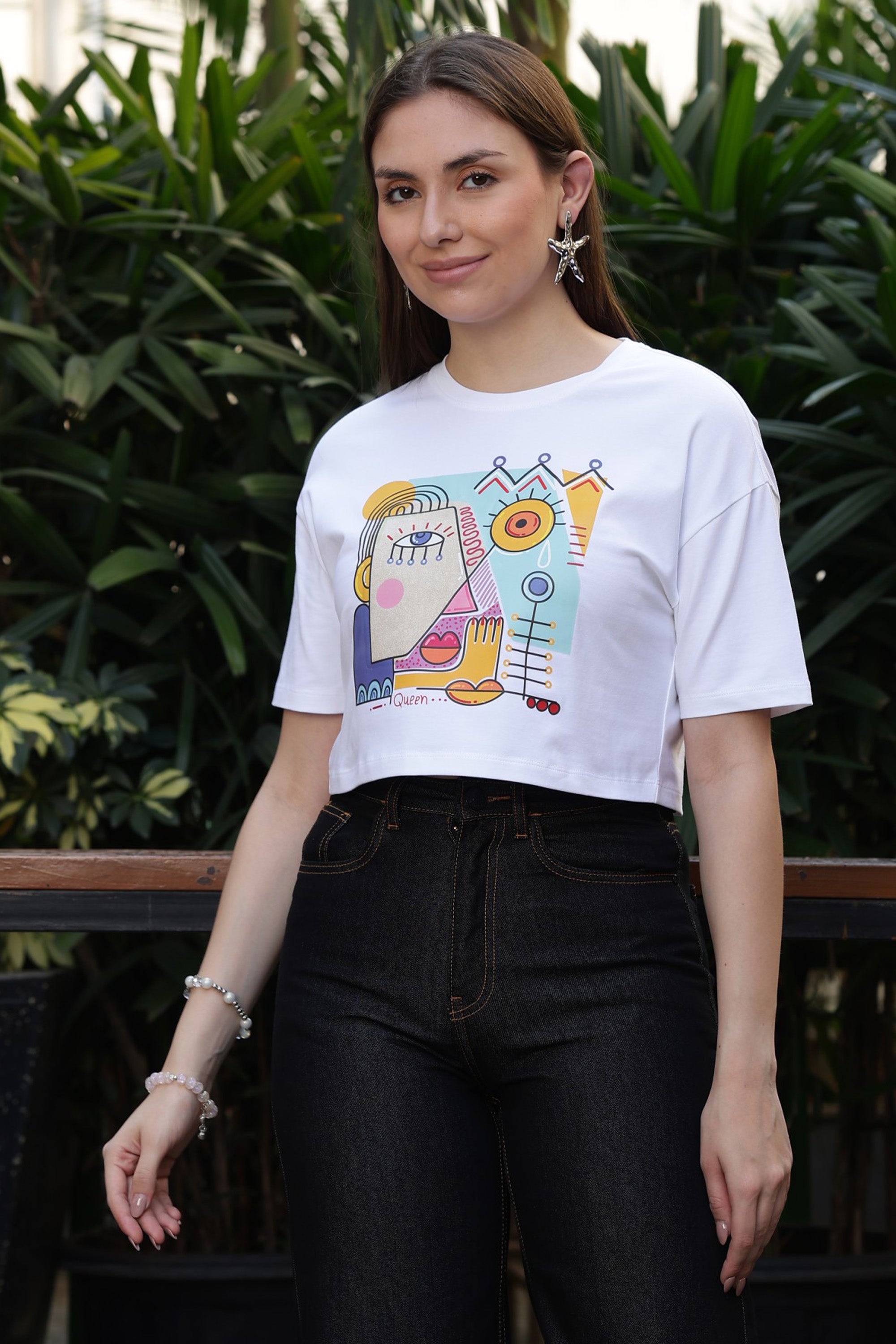 ONE SKY Women’s 95% Cotton 5% Spandex Half Sleeve T-Shirt – Round Neck Graphic Print Top, Casual Pull-On Tee, Machine Washable
