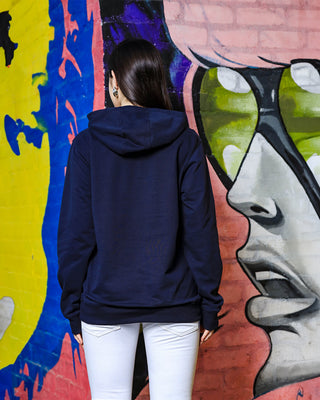 Women's Typography & Unique Printed Hoodie, Navy Blue Sweatshirt