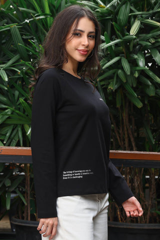 ONE SKY Women's Printed & Typographic Full Sleeve T-Shirt | Cotton Modal Blend Round Neck Top | Soft & Stretchy