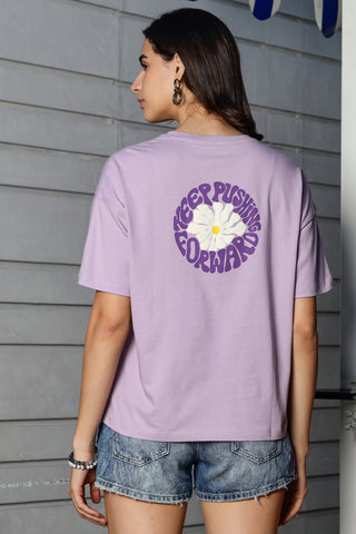 WOMEN LAVENDER FOREST DROP SHOULDER SLEEVES PRINTED T SHIRT