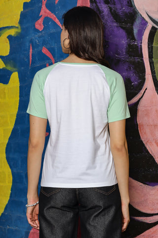 WOMEN LAUREL GREEN RAGLAN SLEEVES PRINTED T SHIRT