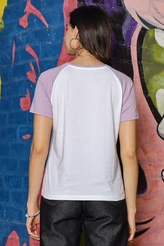 WOMEN MAUVE SHADOW RAGLAN SLEEVES PRINTED T SHIRT
