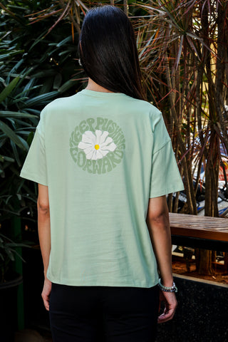 WOMEN ELM GREEN DROP SHOULDER SLEEVES T SHIRT