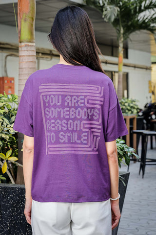 WOMEN DEEP PURPLE DROP SHOULDER SLEEVES PRINTED T SHIRT