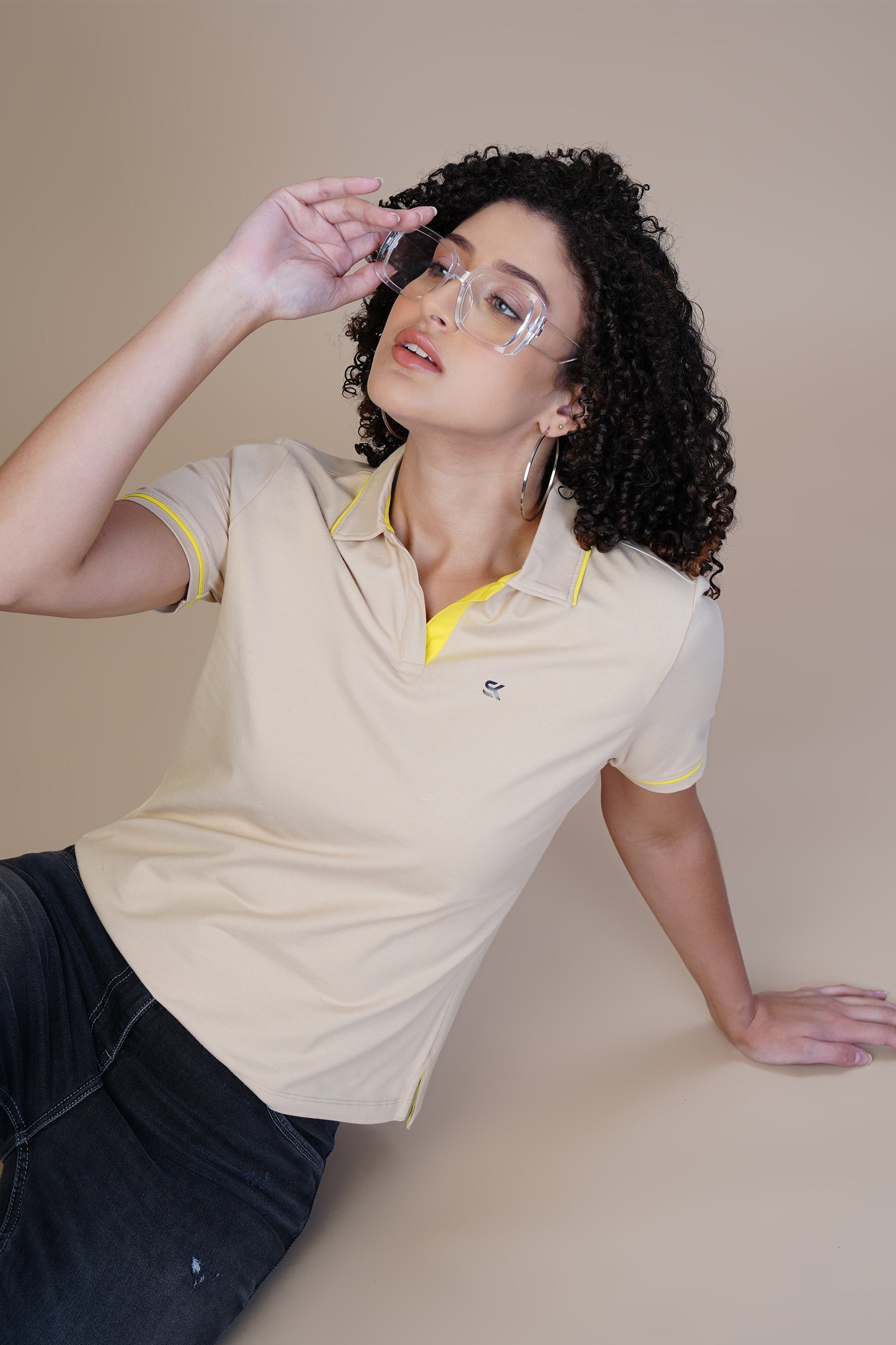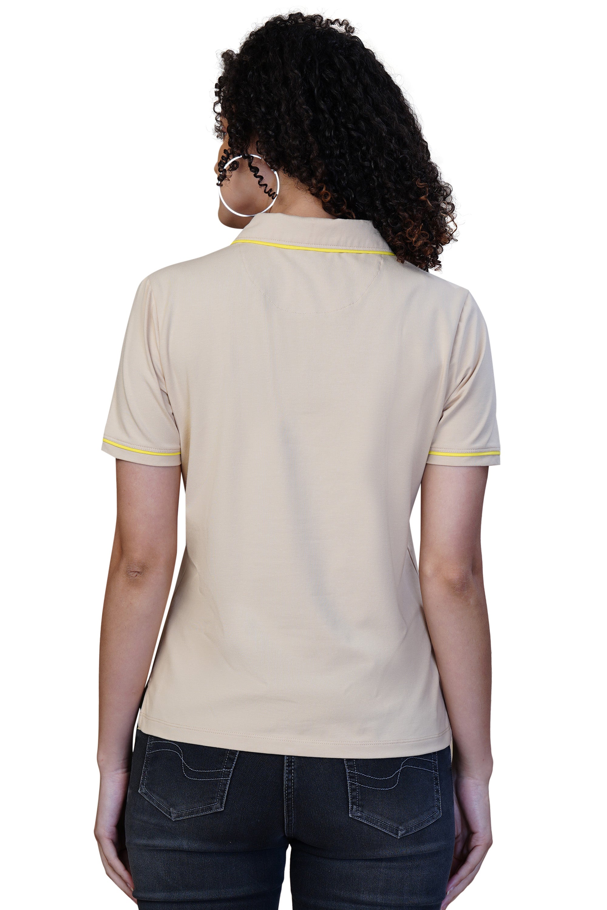 ONE SKY WOMEN BEIGE SOLID POLO T SHIRT