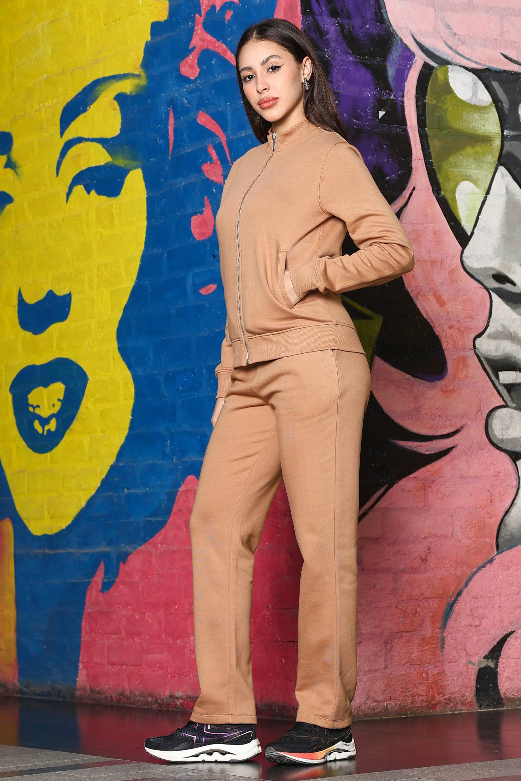 Stay stylish and active in the ONE SKY Women's Front Open Tracksuit, designed for modern comfort and versatility. Made from a breathable and stretchable cotton-rich blend (76% cotton, 19% polyester, 5% spandex), this co-ord set includes a zippered front jacket with a mock collar and matching slip-on pants. Both top and bottom feature functional pockets and a flattering flat-front design, making it ideal for workouts, travel, or relaxed casual wear. The mid-rise pants offer a comfortable fit, while the solid color and clean lines bring a sporty-chic appeal to your wardrobe.