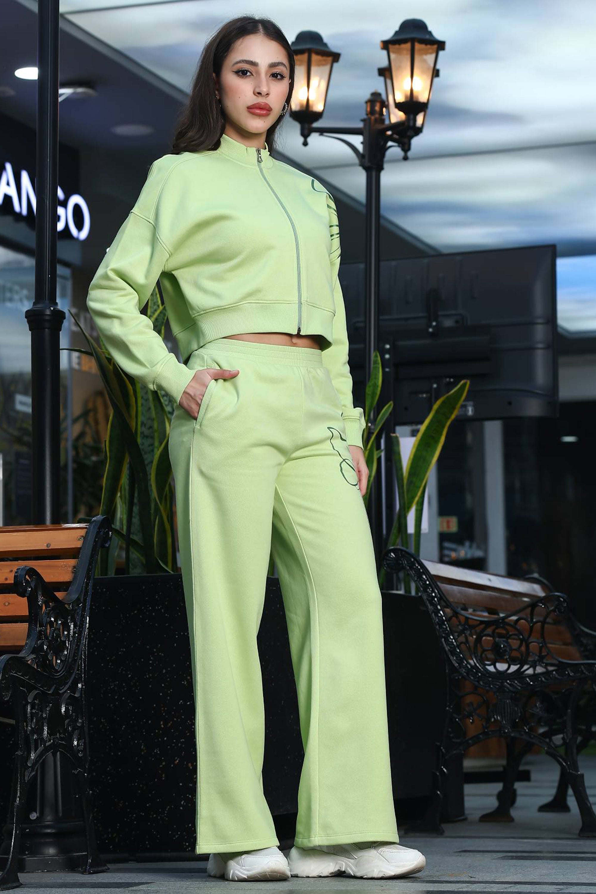 Stay stylish and comfortable with the ONE SKY Women's Floral Printed Crop Tracksuit, designed for the modern woman who loves a touch of femininity in her activewear. Made from a premium cotton-blend fabric (76% cotton, 19% polyester, 5% spandex), this breathable and stretchable set features a cropped, long-sleeve zip-up top with a chic mock collar and elegant floral prints. The matching mid-rise pants offer a flattering fit with a flat-front, slip-on design, making this co-ord set perfect for lounging, travel, light workouts, or casual streetwear. Two functional pockets in the bottoms keep your essentials close.