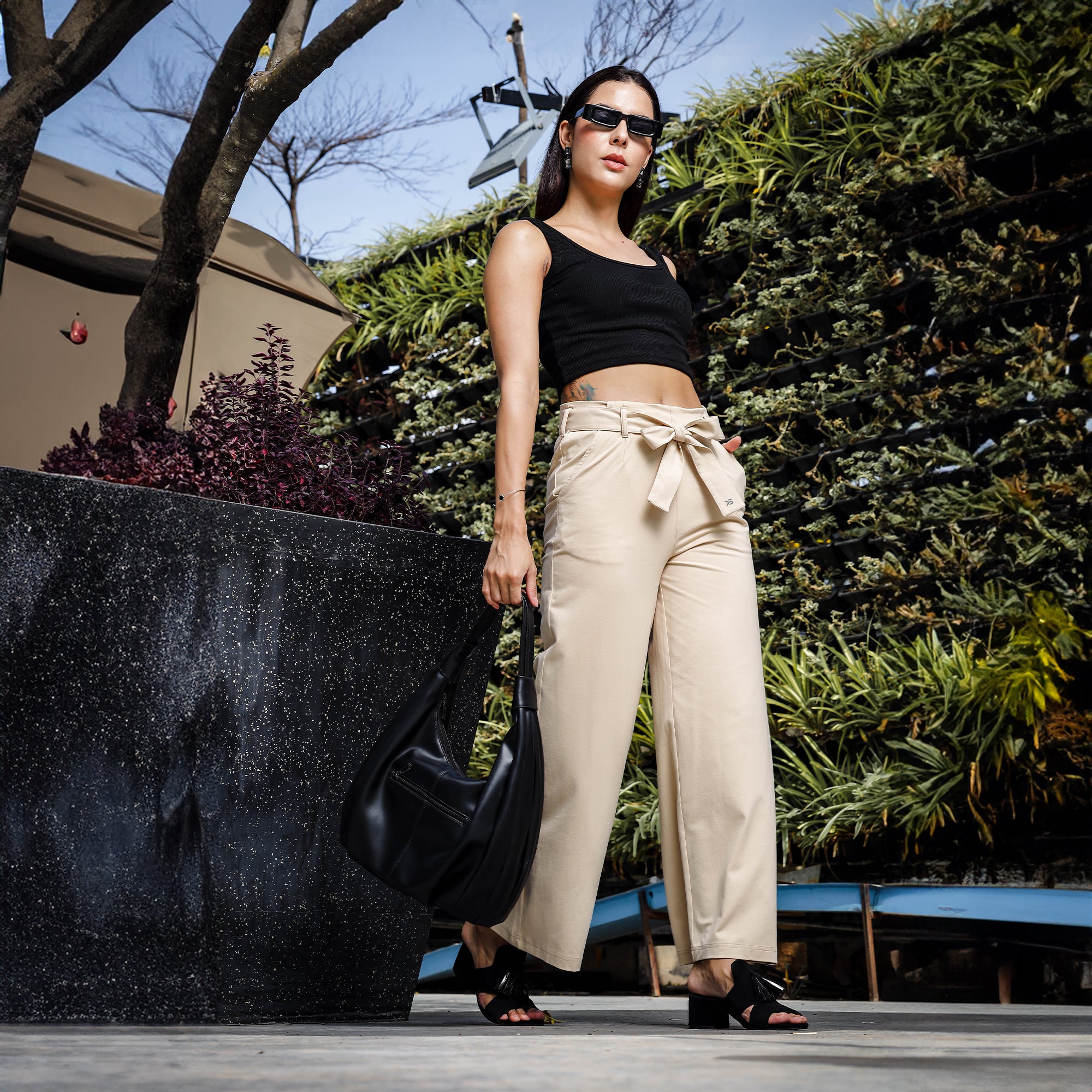 Womens High Waist Straight Fit Pant Cotton Blend Casual Trouser