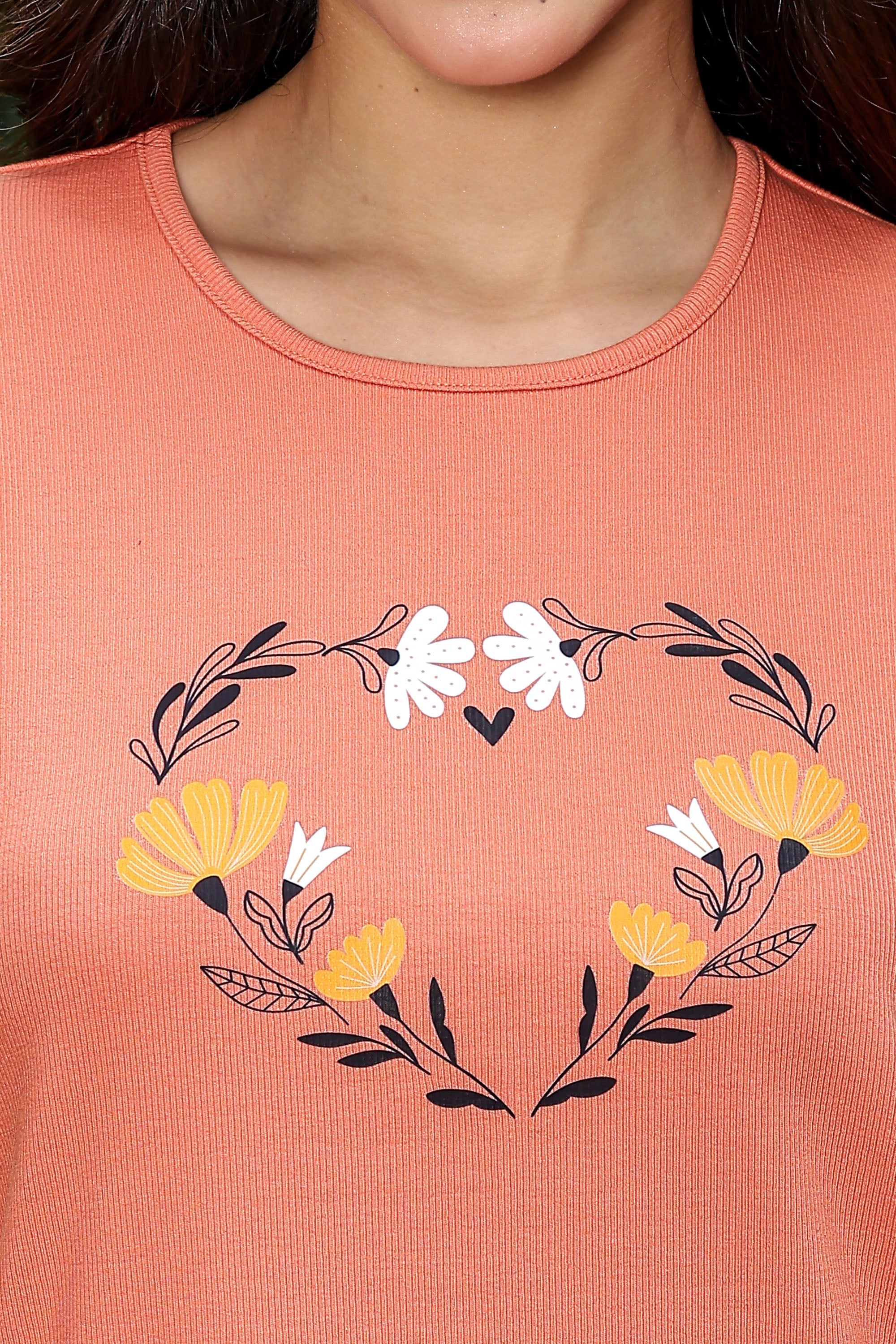 WOMEN ROUND NECK ORANGE HALF SLV CO-ORD SET