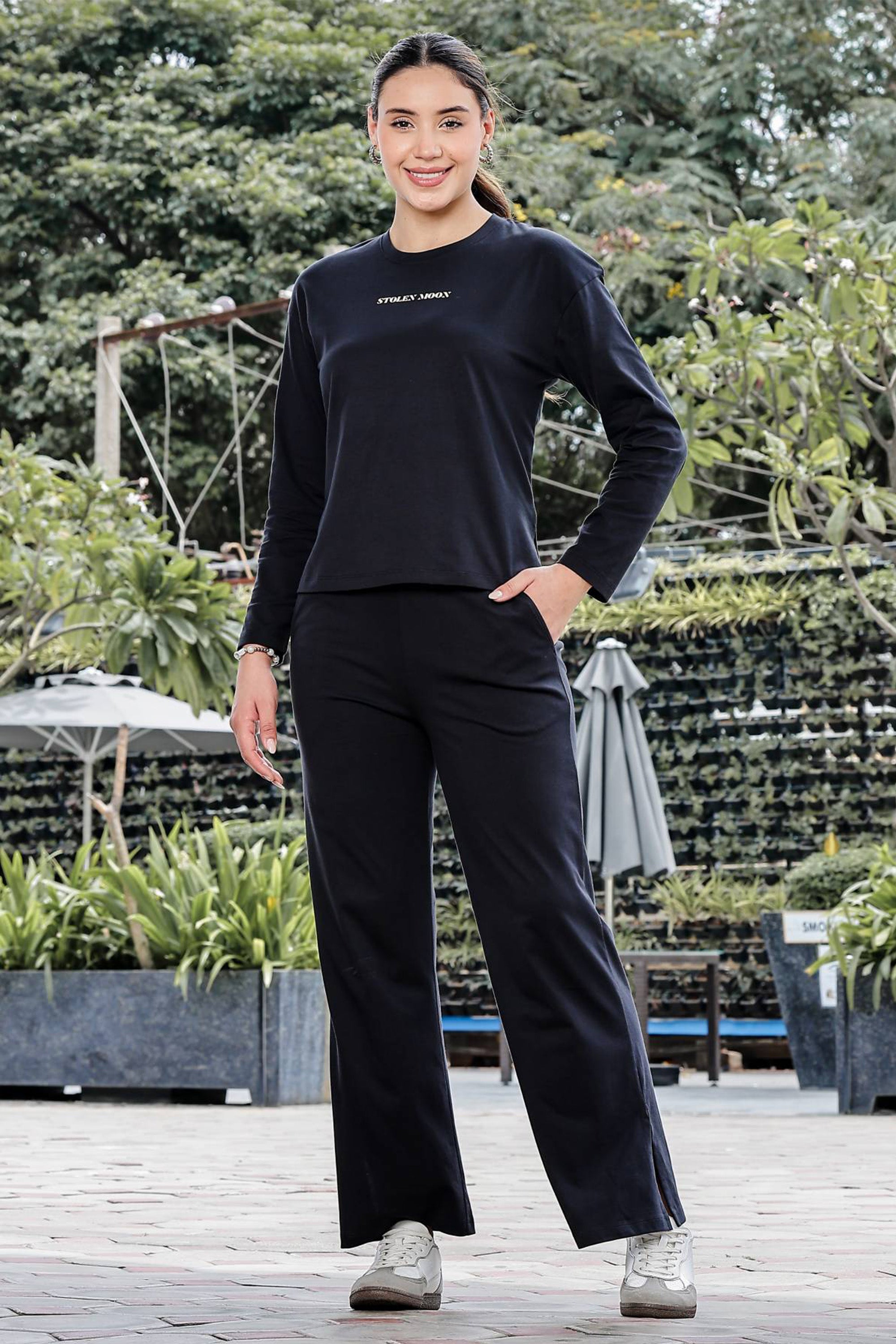 WOMEN ROUND NECK BLACK FULL SLV CO-ORD SET