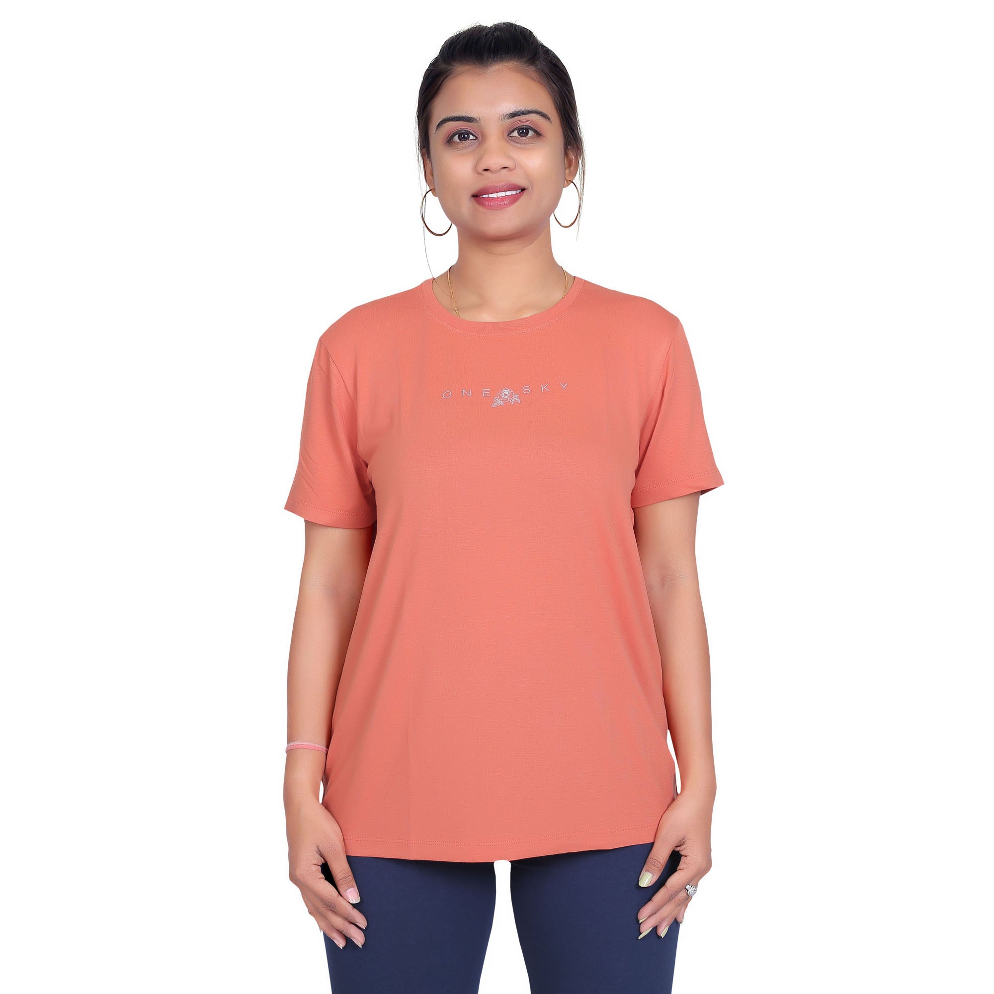 Women Typography Round Neck Cotton Blend Orange T-Shirt