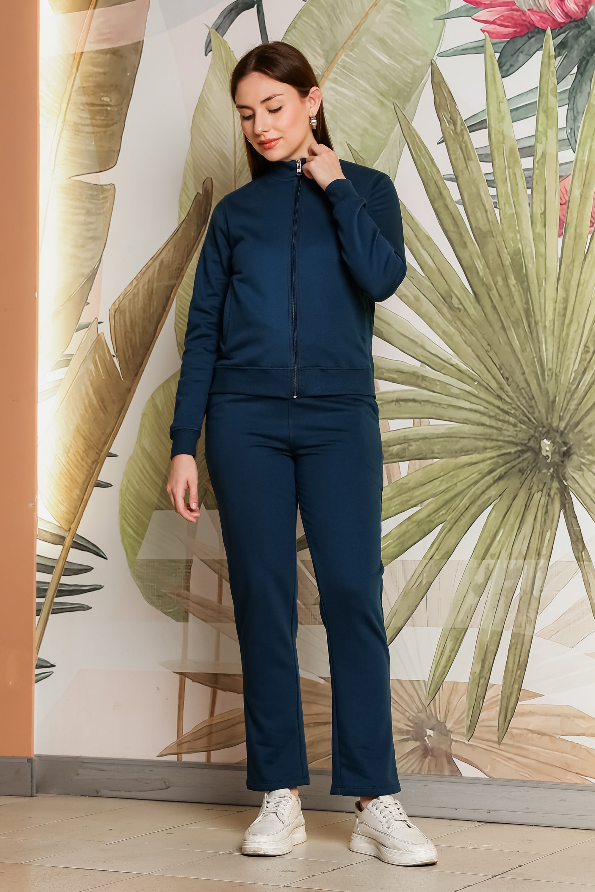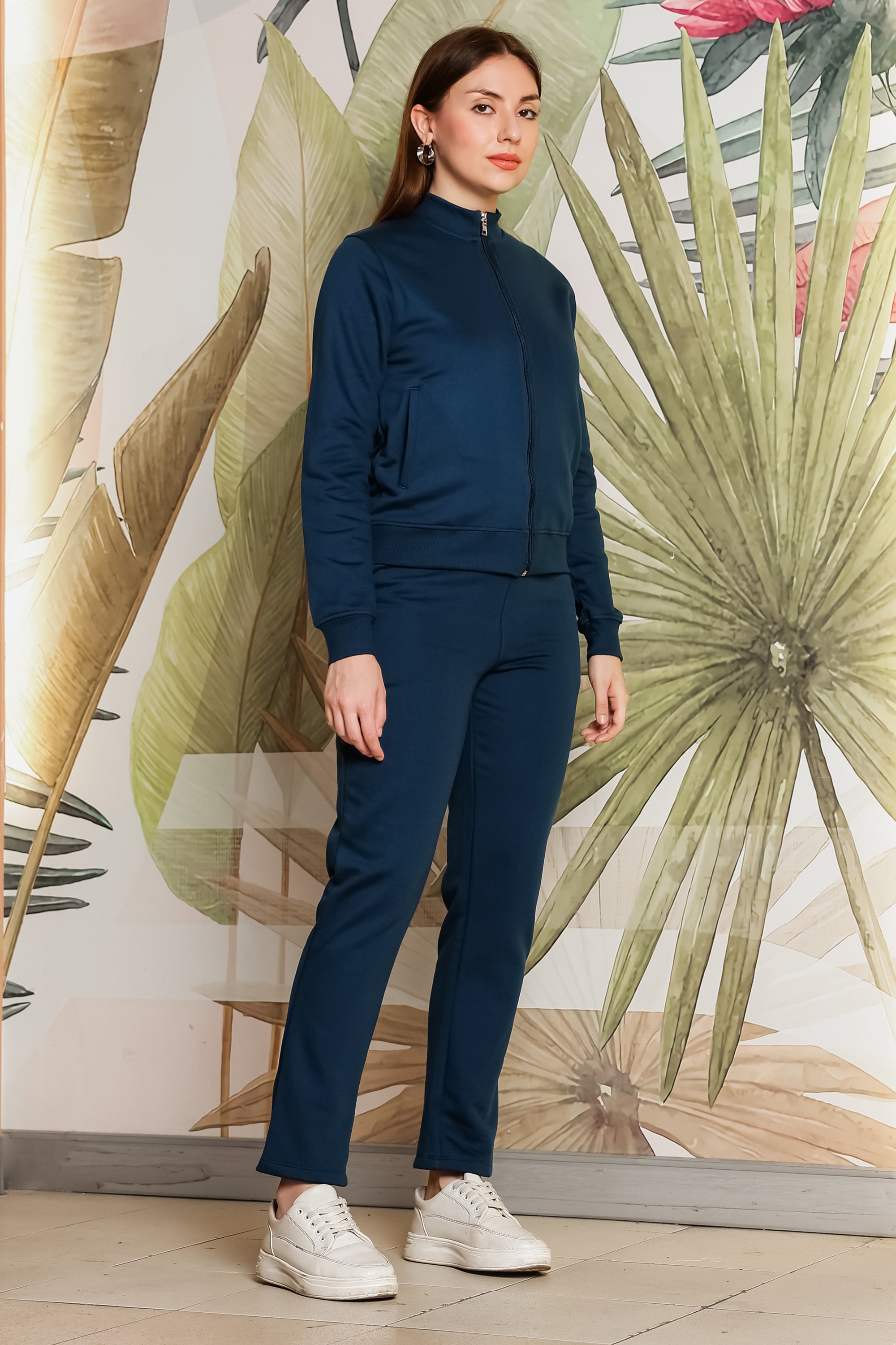 Stay stylish and active in the ONE SKY Women's Front Open Tracksuit, designed for modern comfort and versatility. Made from a breathable and stretchable cotton-rich blend (76% cotton, 19% polyester, 5% spandex), this co-ord set includes a zippered front jacket with a mock collar and matching slip-on pants. Both top and bottom feature functional pockets and a flattering flat-front design, making it ideal for workouts, travel, or relaxed casual wear. The mid-rise pants offer a comfortable fit, while the solid color and clean lines bring a sporty-chic appeal to your wardrobe.