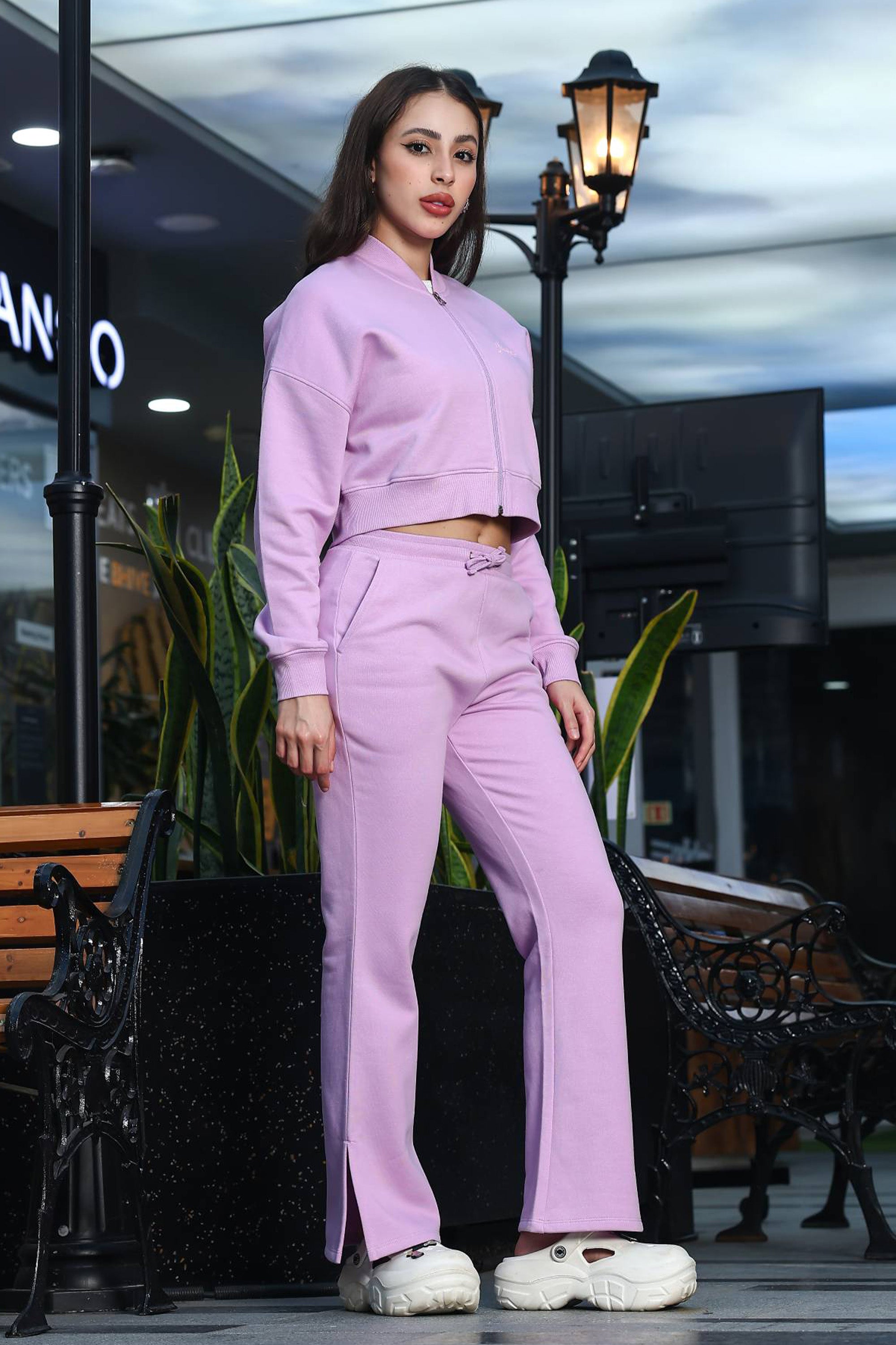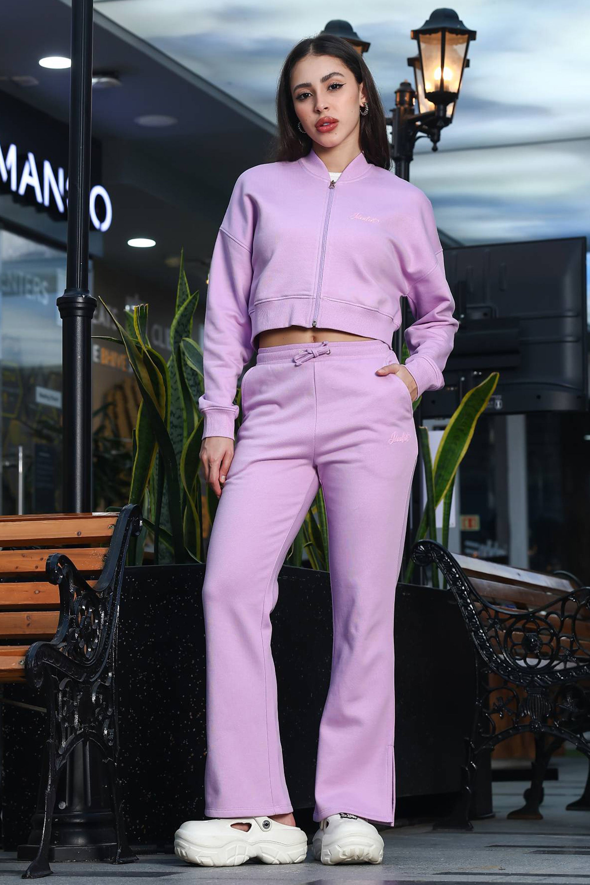 Make a bold and stylish statement with the ONE SKY Women's Printed Crop Tracksuit. This trendy co-ord set features a crop-length zip-up jacket with a modern stand collar and eye-catching printed and typographic graphics. Crafted from a breathable and flexible cotton-rich fabric blend (76% cotton, 19% polyester, 5% spandex), it offers both comfort and fashion-forward appeal. The matching mid-rise pants come with a drawstring waist and a flat-front design, making them perfect for workouts, lounging, or everyday wear. With two functional pockets in the bottoms, this set keeps things practical while turning heads.