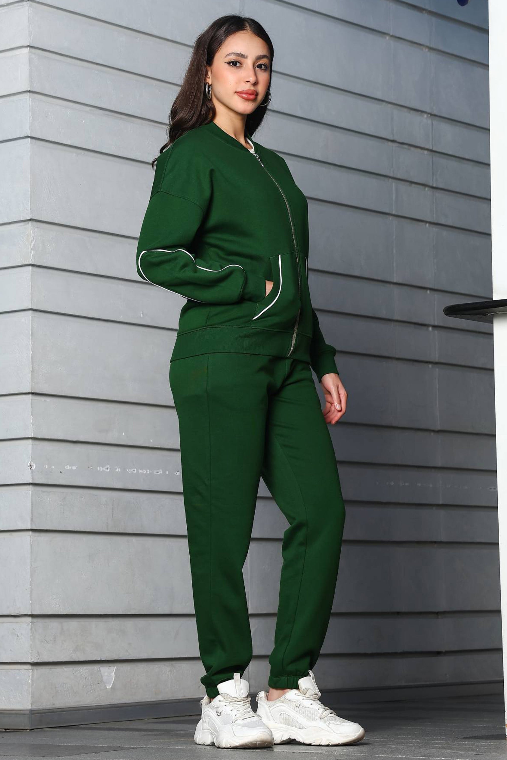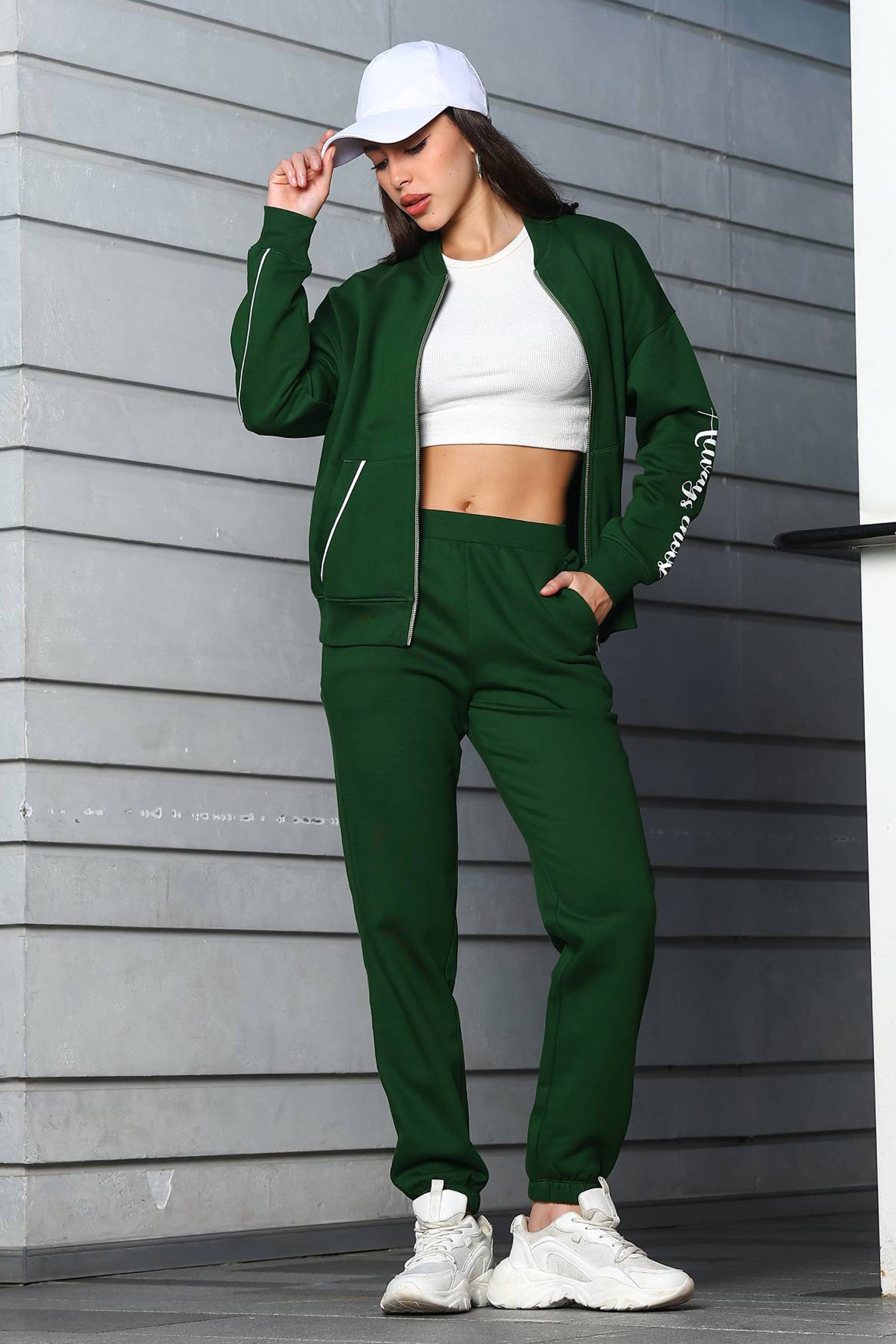 Refresh your casual wardrobe with the ONE SKY Women's Embroidered & Typographic Tracksuit, a blend of sporty sophistication and everyday comfort. Crafted from a soft and stretchable cotton-rich fabric (76% cotton, 19% polyester, 5% spandex), this co-ord set includes a zip-up top with a stylish stand collar and long sleeves, enhanced with chic embroidery and bold typographic prints. The coordinating mid-rise pants feature a flat-front, slip-on design for effortless wear. With two pockets each on the top and bottom, this tracksuit balances fashion, function, and ease—ideal for lounging, travel, or light activity.