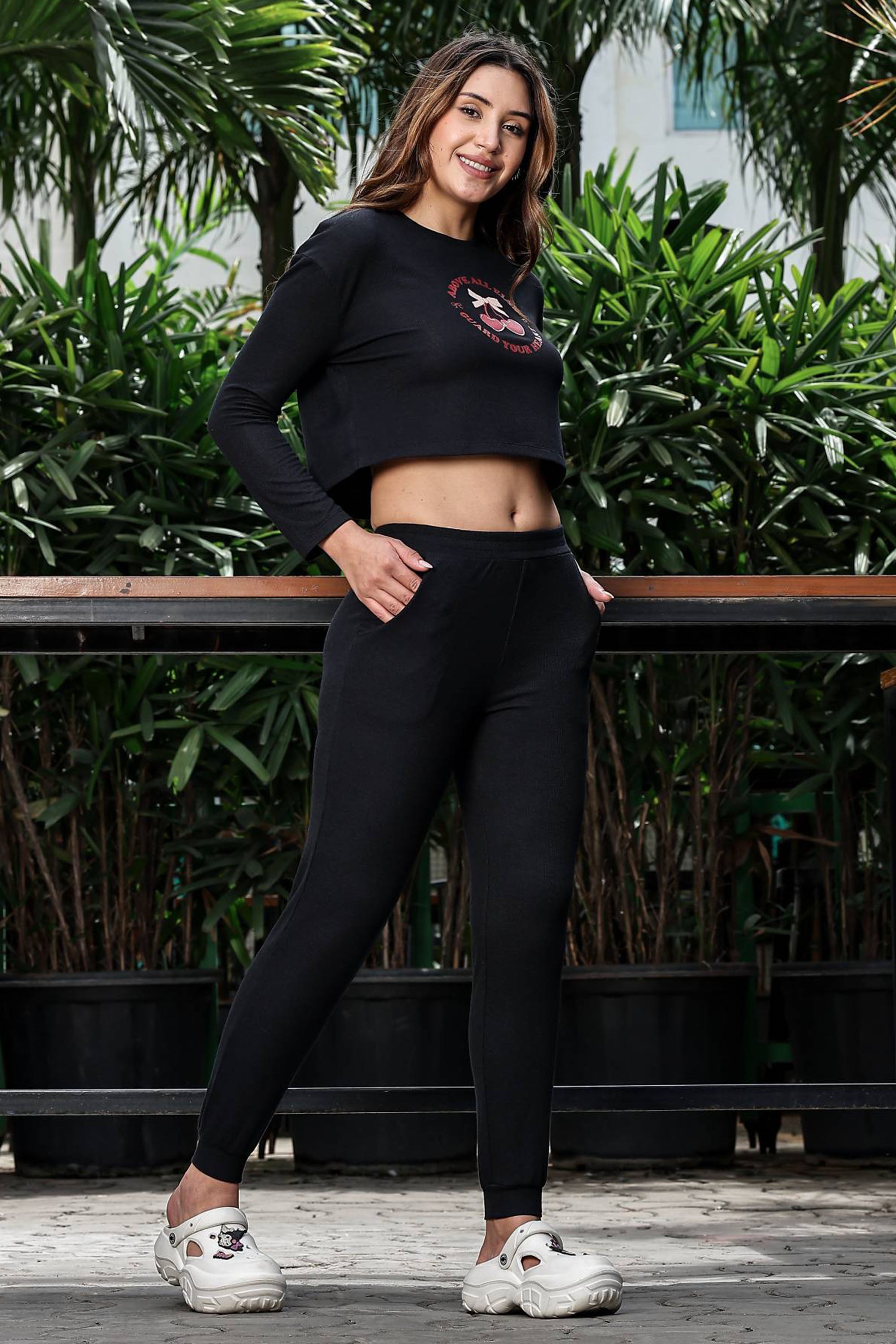 WOMEN ROUND NECK BLACK FULL SLV CO-ORD SET