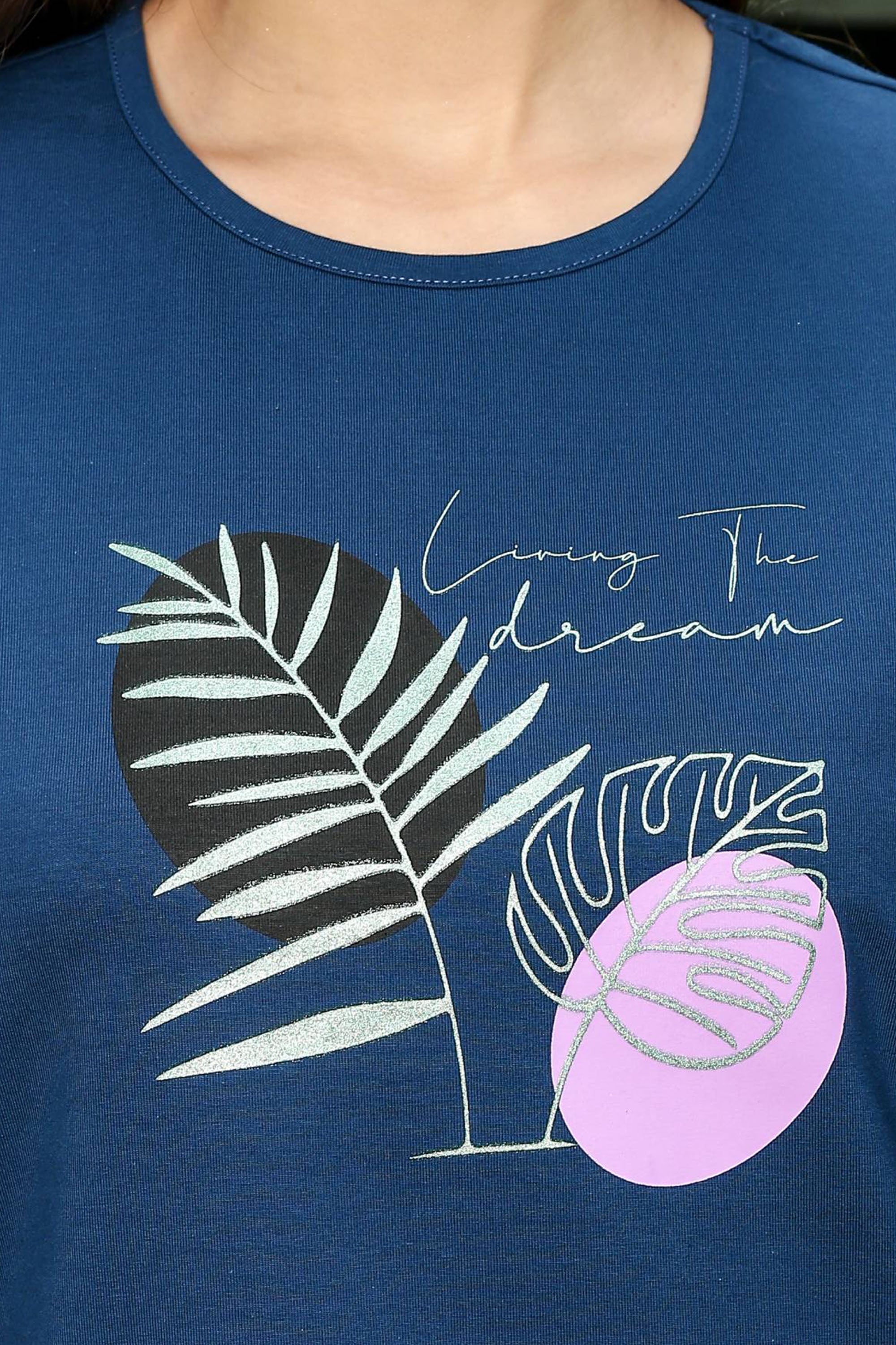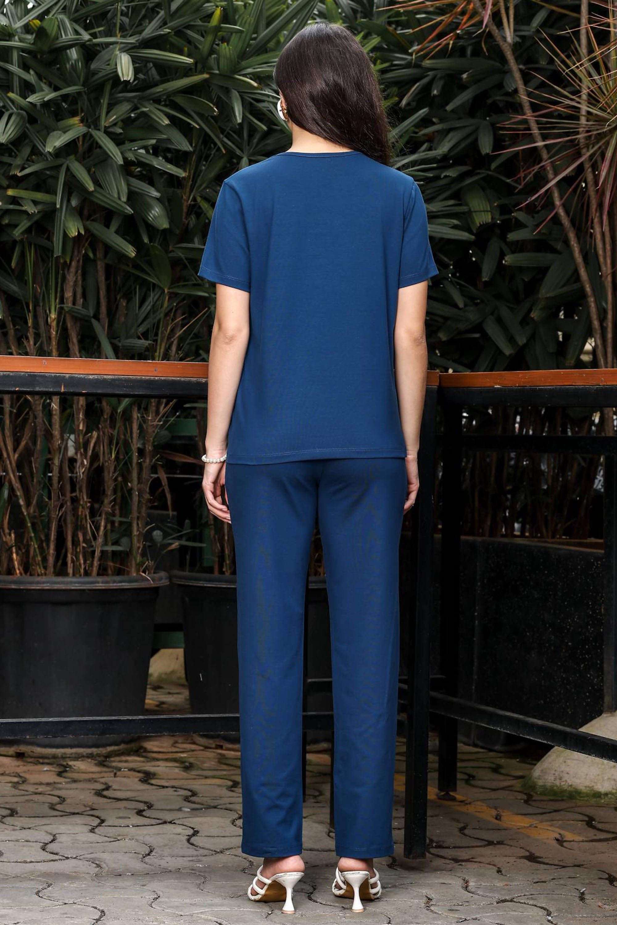 WOMEN ROUND NECK BLUE HALF SLV CO-ORD SET