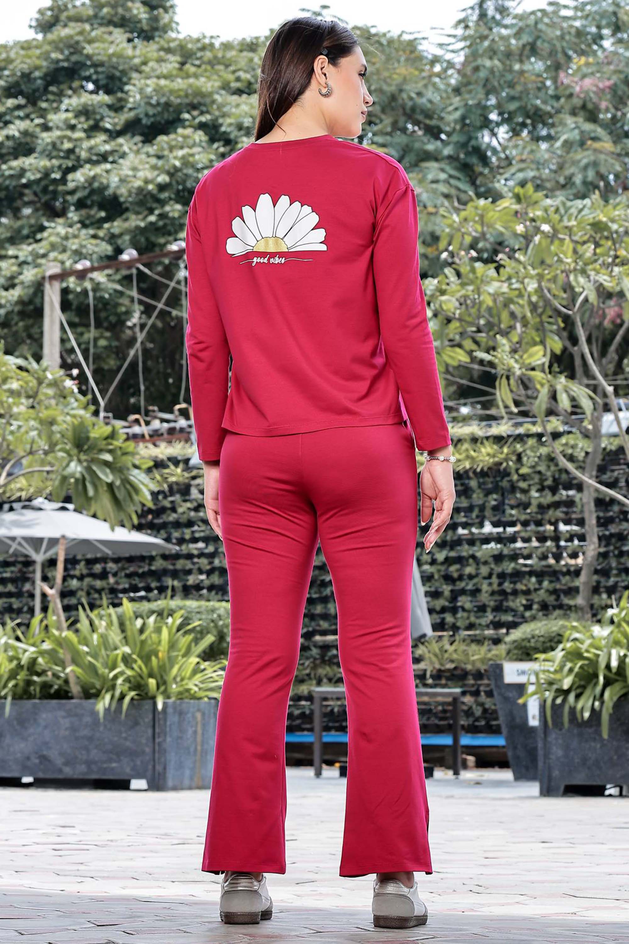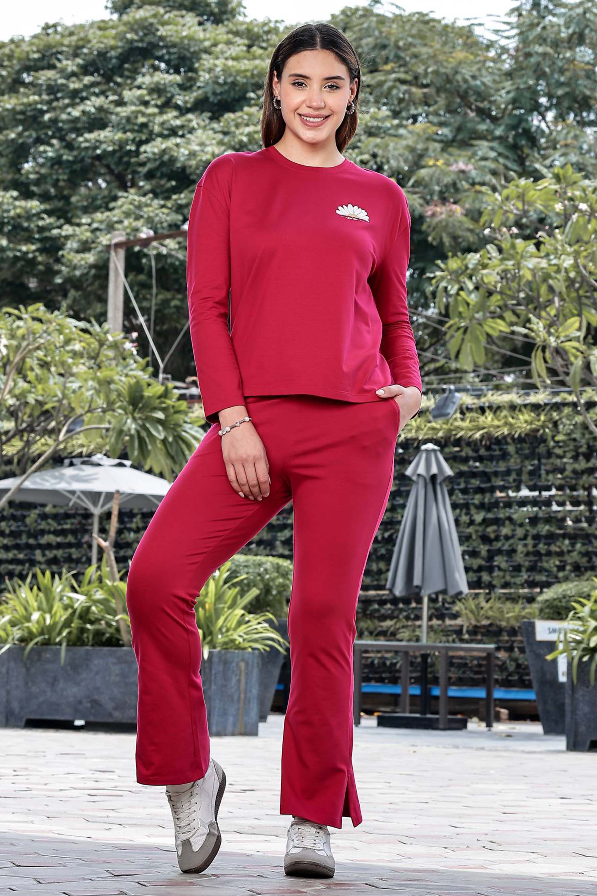 WOMEN ROUND NECK RED FULL SLV CO-ORD SET